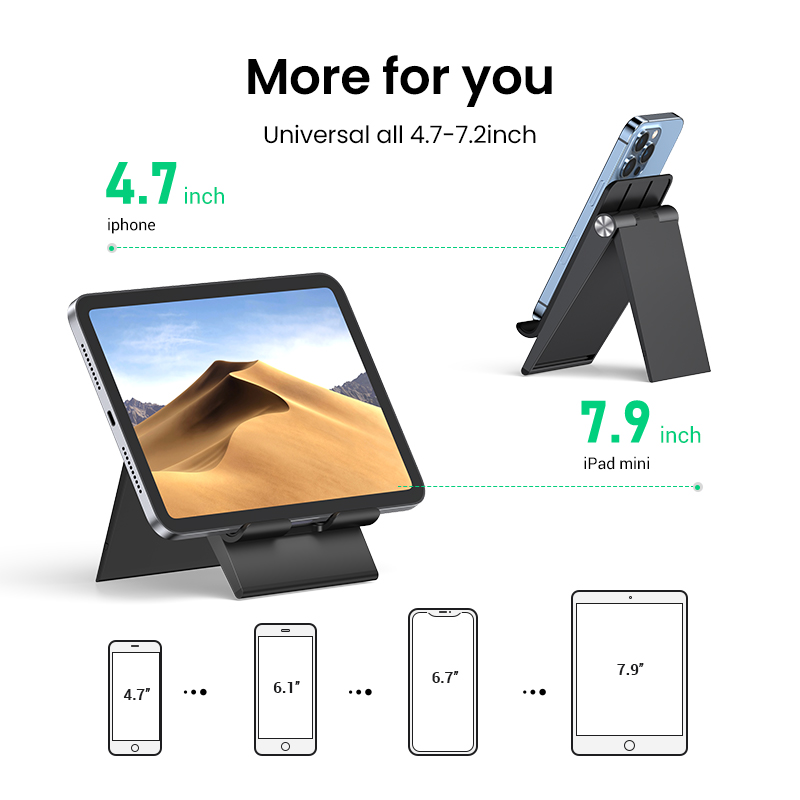 UGREEN Tablet Stand Holder Foldable Desktop Stand Protable Holder Adjustable Charging Dock Compatible for Phones, iPad, iPad Pro 11 Inch, iPad Mini 5 4 3 2, iPad Air, Nintendo Switch