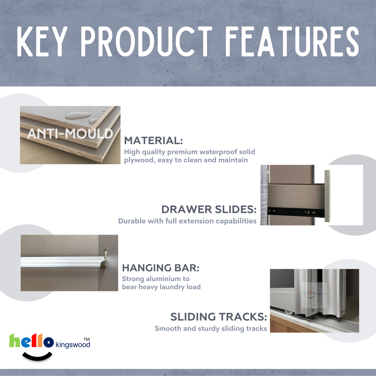 [Kingswood] Mirage 4 Sliding Door Wardrobe, 4 | 4.5 | 5 | 5.5 | 6ft, Solid Plywood, 12 Months Warranty Included, Available in 9 Colours
