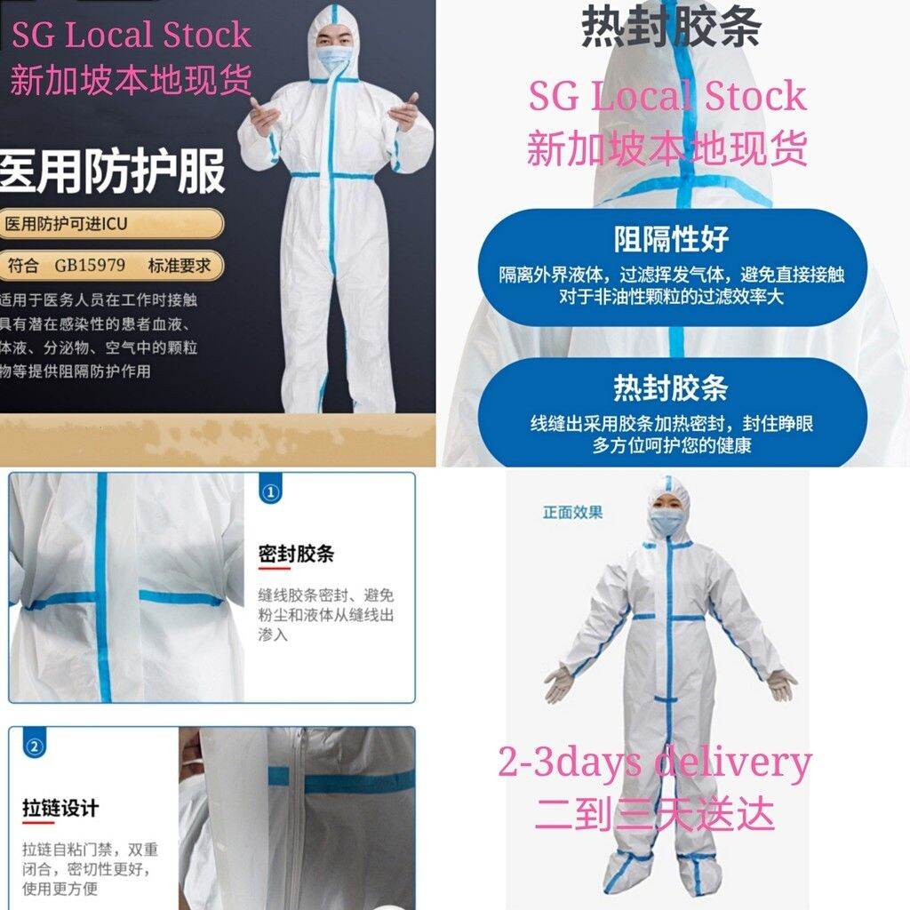 SG Ready Stock Medical Sterile/Sterilized Protective Clothing/Isolation Cloth PPE Kits Non Woven Medical Hooded Coverall Isolate Protection Anti-Bacterial Anti-Epidemic Suit Disposable Protective Clot