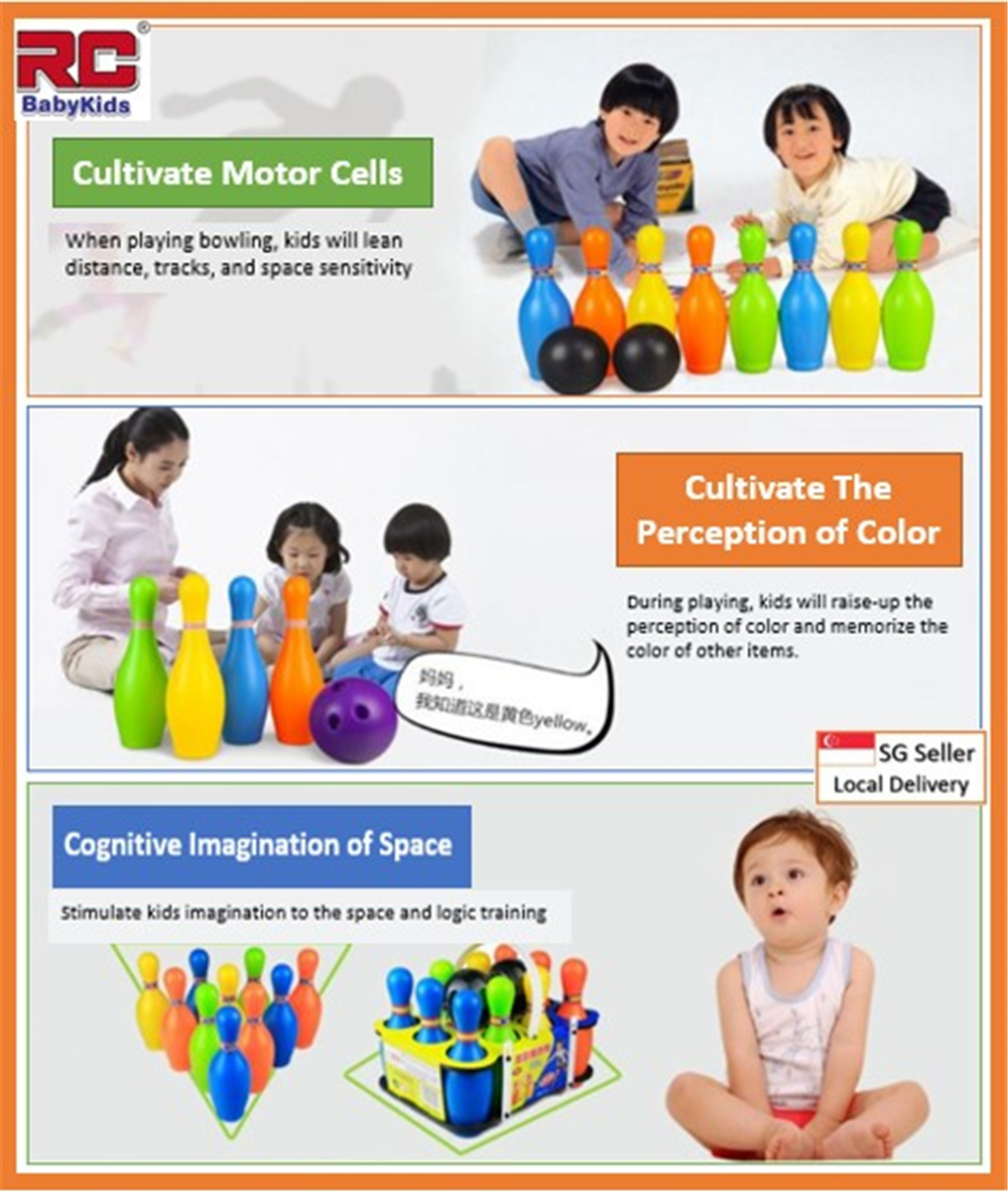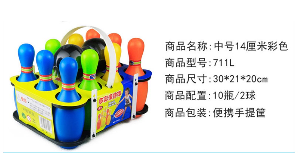 - 10 Bowling Pins + 2 Bowling BallsCute and colorful *,which is attractive to children. *Children will have hours of fun with this set indoors or outdoors. *Babies overall abilities will be improved while having fun. *Taking exercise and doing sports from childhood,build strong body.