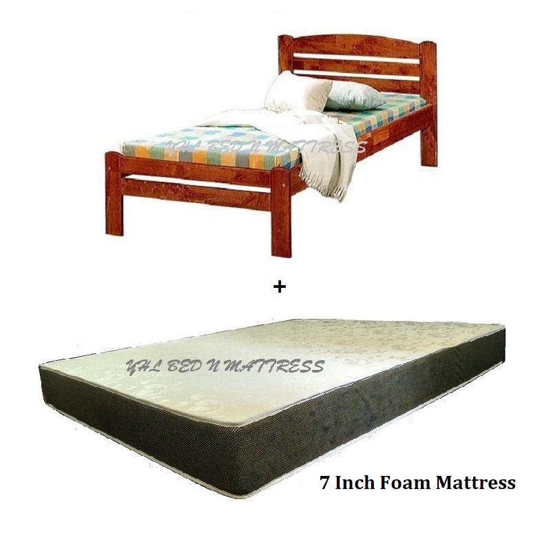 YHL Elsa Solid Wooden Single Bed Frame With Mattress