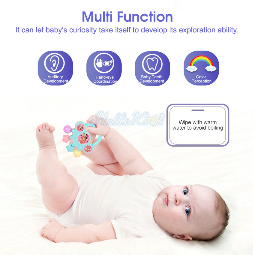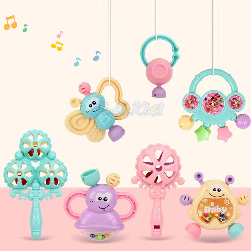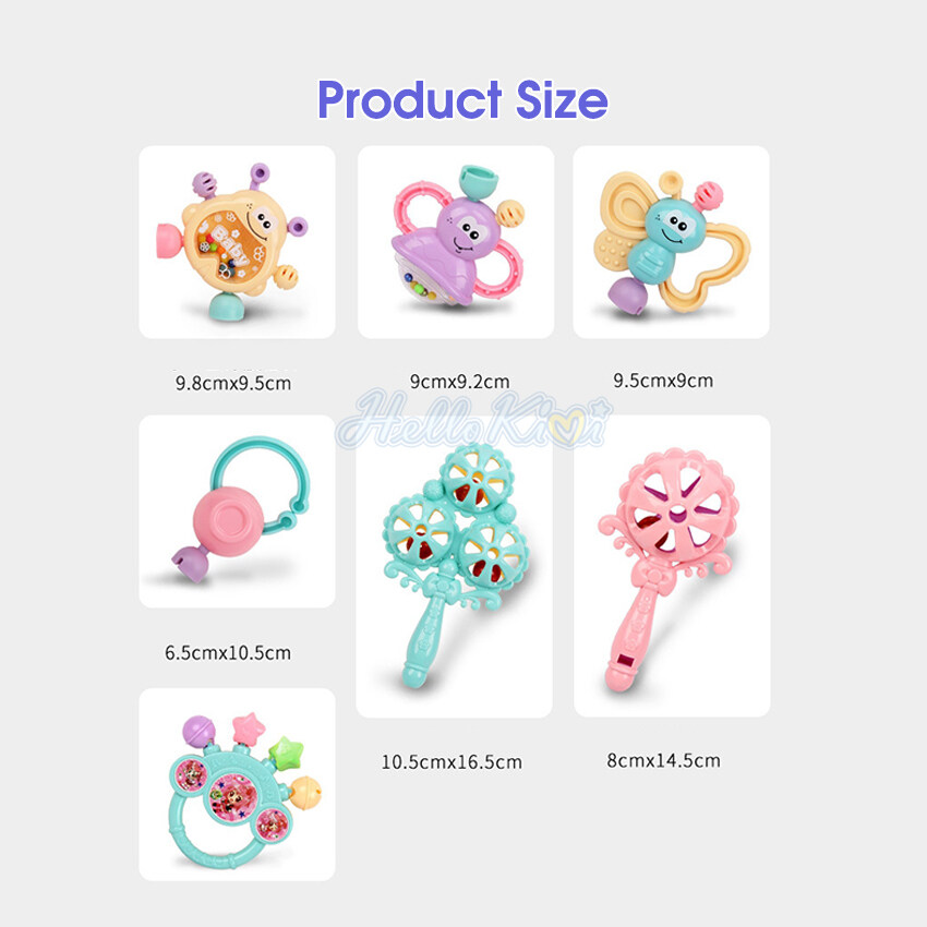 HelloKimi 7PCS Baby Rattles Set Baby Rattles Toys Silicone Teether Rattles Hand Shake Bed Bell Trolley Rattles Baby Toddler Toys Handbell Rattle Newborns Educational Gift