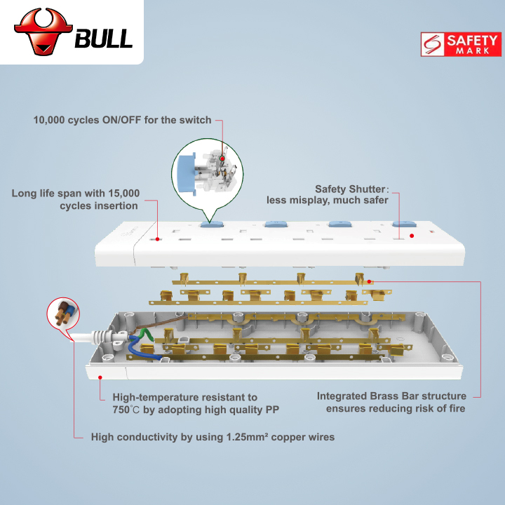 - Integrated Brass Bar structure ensures reducing risk of fire