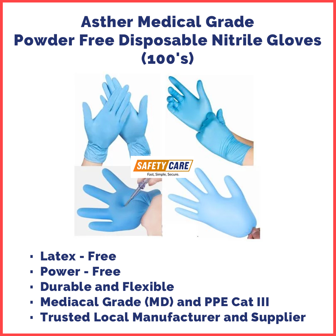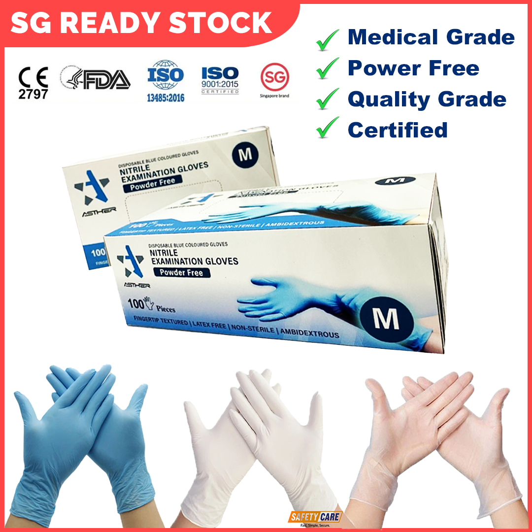 Nitrile Gloves, Medical Grade Gloves, Disposable Gloves (100's)(Powder Free) Certified Glove SG Ready Stock