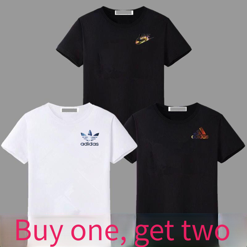 (Buy one, get two free) Super value all-match fashion T shirt all-match round neck Korean version loose large print half sleeve shirt