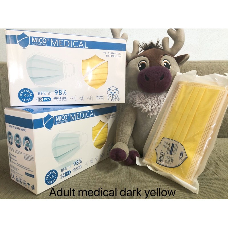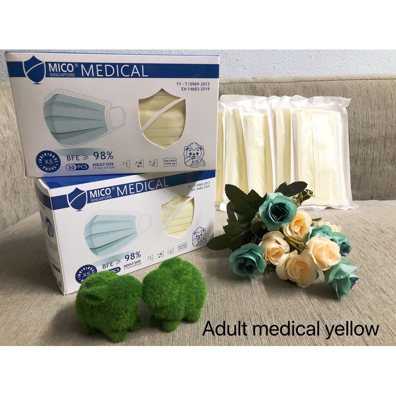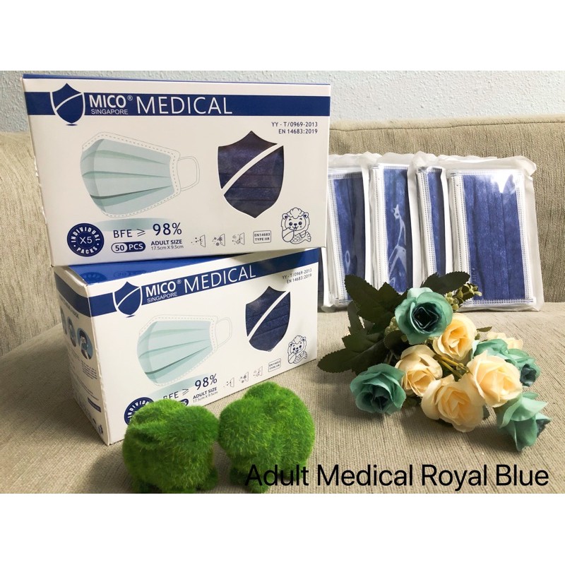 Product detail: -3ply -50pcs in a box -5 packages of 10 masks - Efficient protective meltblown cloth - Comfort non woven fabric - Ultrasonic seamless technology - Strong plasticity nose strip - With MICO stamp on mask to protect authenticity - This product applies with the BFE and PFE standards specified by YY/T Surgical mask