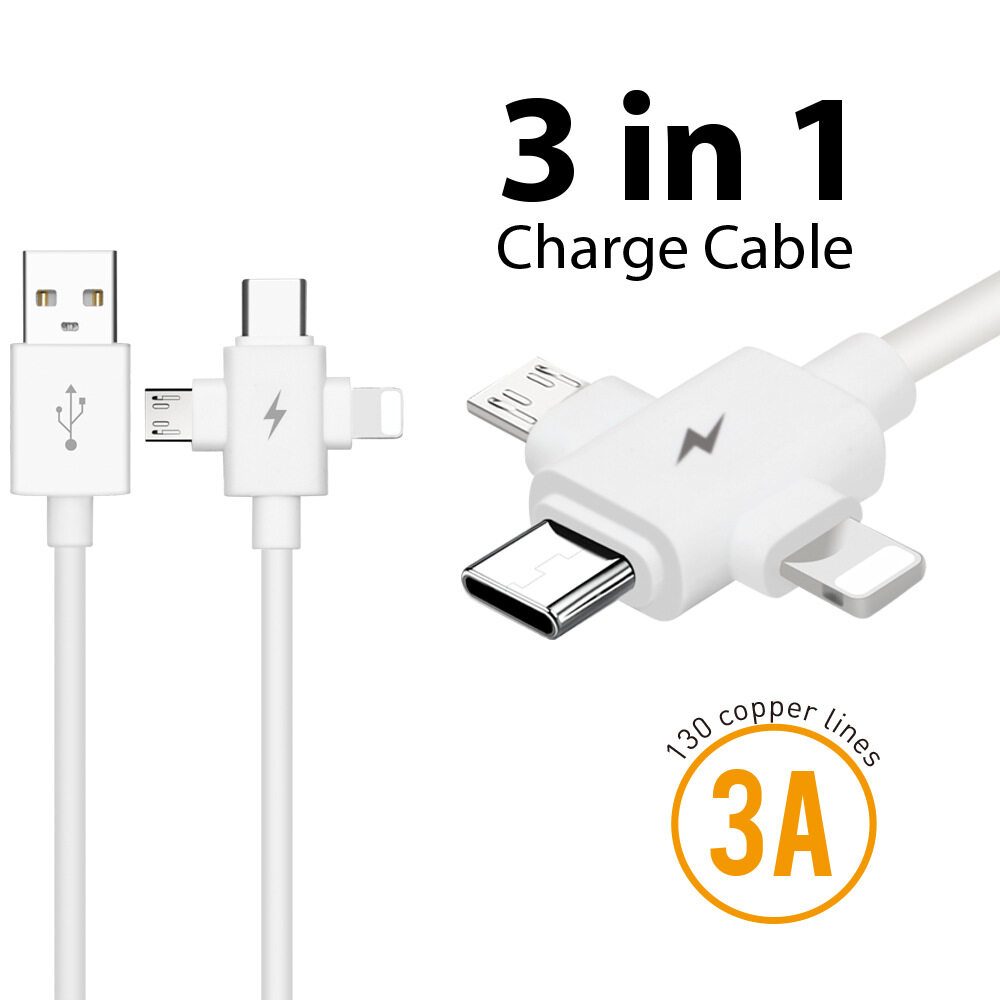 Floveme 3 In 1 USB Cable For iPhone 12 Charging Charger Micro USB Type C Lightning Charging Cable For Samsung Xiaomi