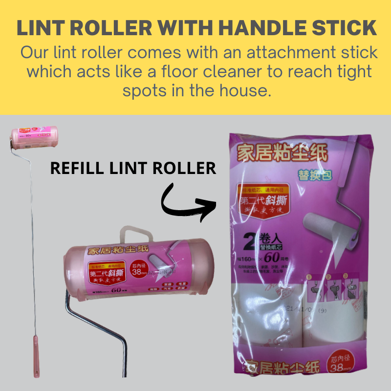 Extra Sheets (60s/90s) Dust & Floor Extra Sticky Lint Roller Refill Long / Short Handle | Hair Removal Bundle Deals 10/16cm