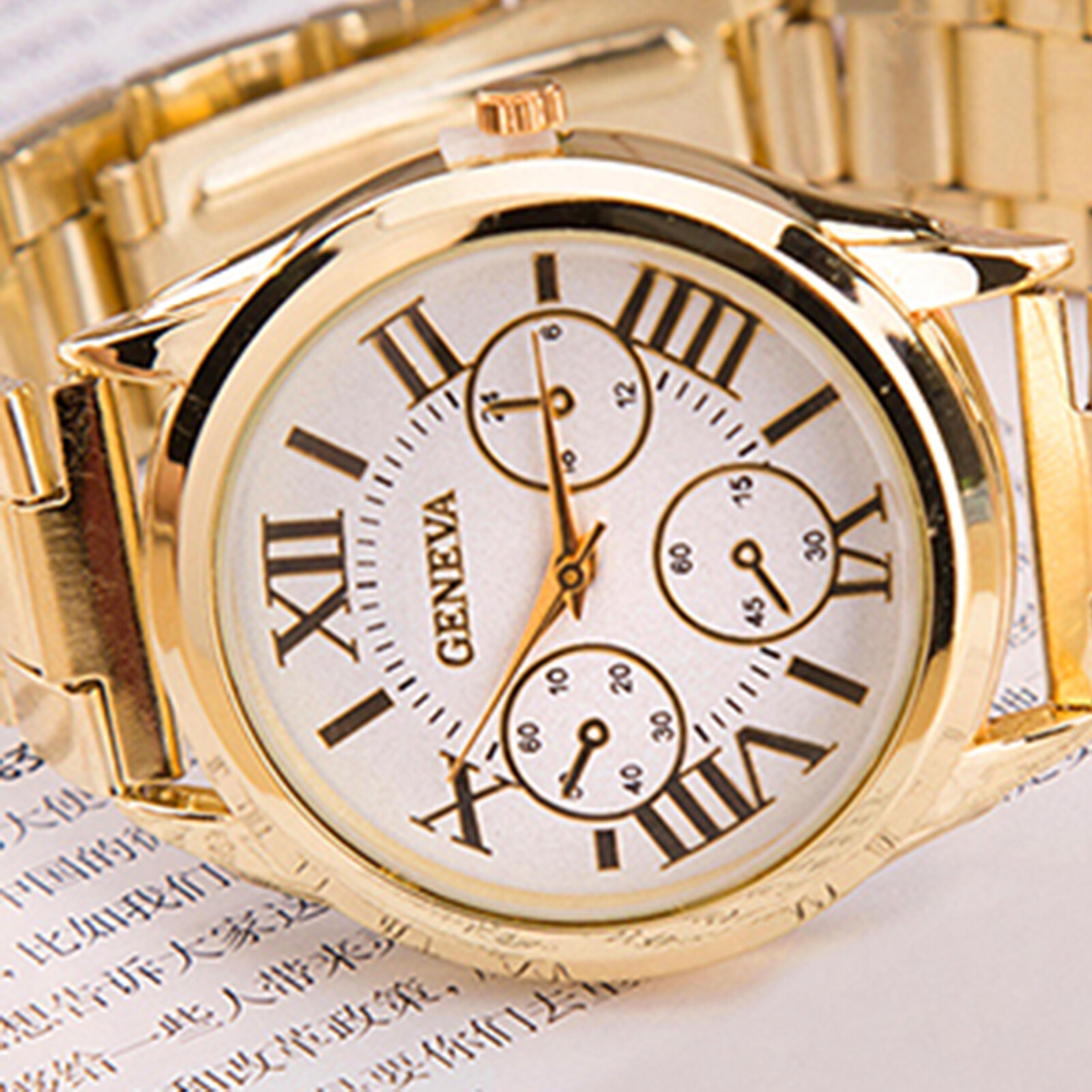 Designed with big roman numerals and golden tone, the watch is pretty charming.