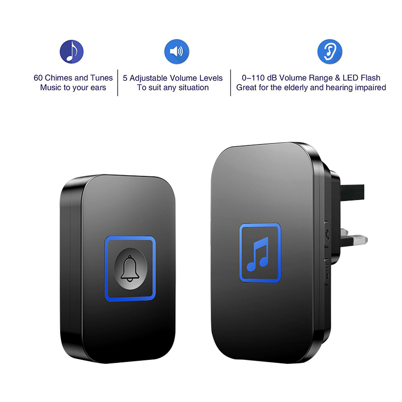 ?SG Fast Delivery?Cacazi Wireless Door Bell Latest 300M Button Waterproof Doorbell Waterproof Wireless Smart Doorbell Loceng Pintu Rumah UK Plug for Home Office 60 Tunes Door Chime Self Powered Door B