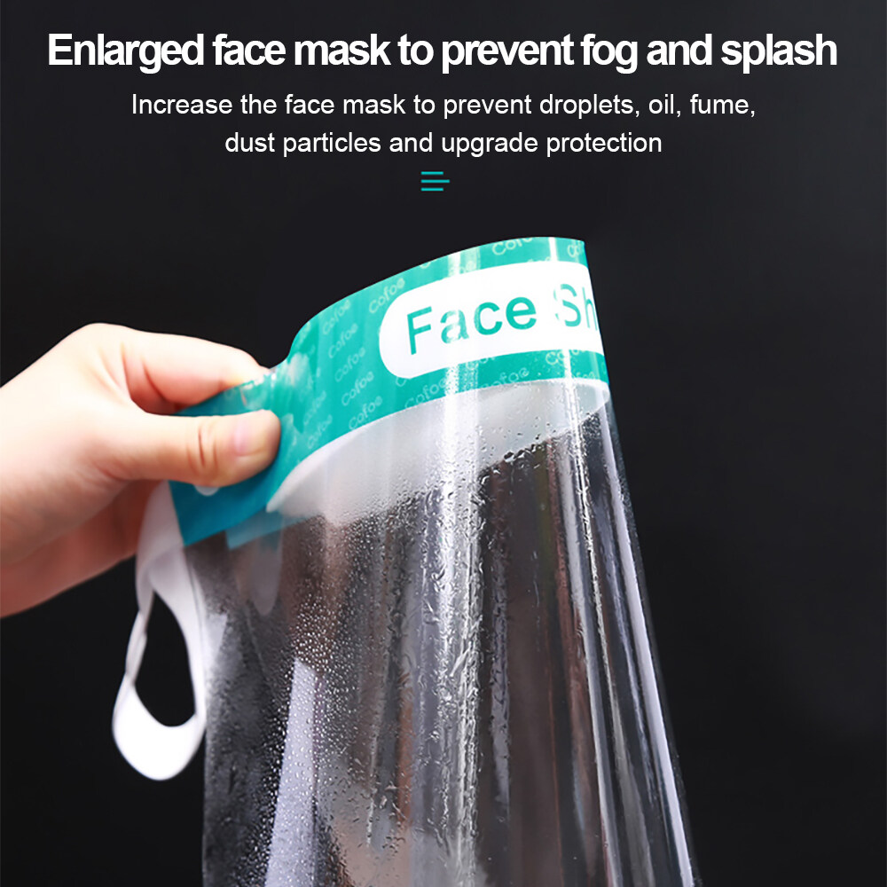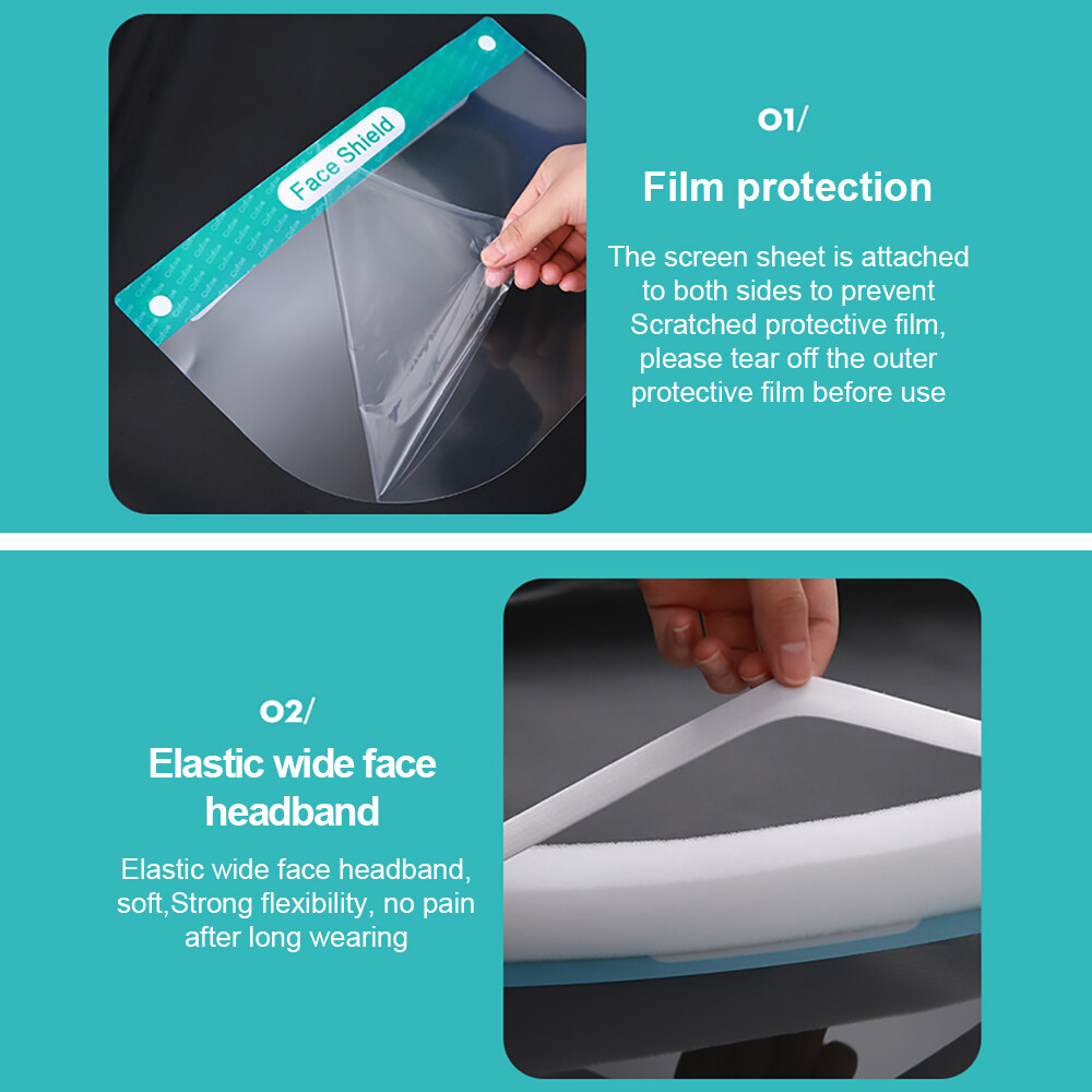 Product name: Medical anti fog and splash proof mask Model specification: sleep type Purpose: Suitable for face protection of operators at the end of medical activities Storage conditions: This product should be placed in a well ventilated, dry room protected from light Validity period: 2 years Product composition: The sleep type is composed of a splash proof sheet, a support spine and an elastic band How to use: The hooded face mask, only needs to be taken out of the packaging bag when using it, and it can be directly on the operator's head< Img. 0>
