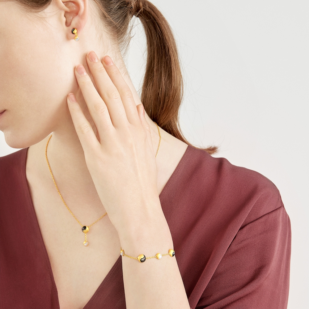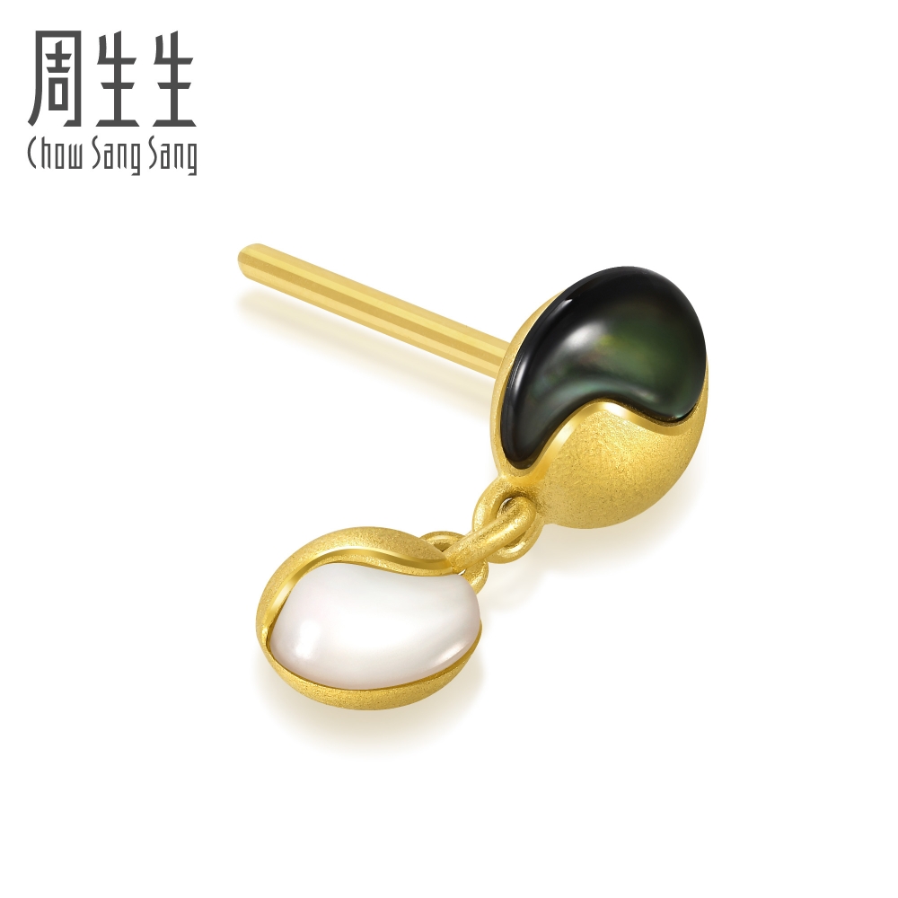 Chow Sang Sang 周生生 Cultural Blessings Daily Bliss 999.9 24K Pure Gold Mother of Pearl Single Earring 92497E [Sold Single Not Pair]