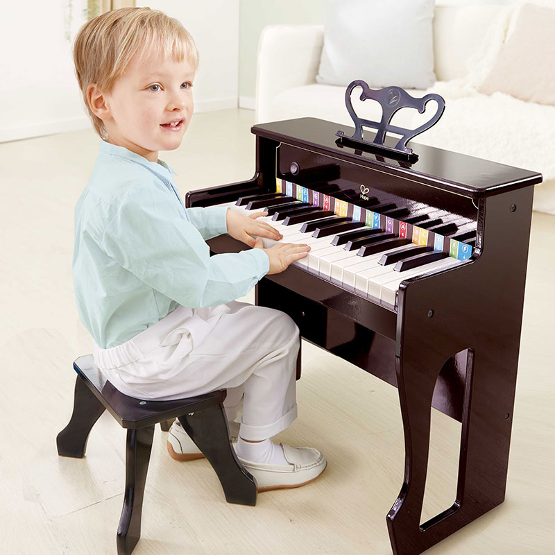 • DIFFERENT TIMBRES: Play the realistically-sized keys harder for a stronger tone, and play them softer for a lighter sound. The upright piano prepares children for advanced musical learning and fine-tunes motor skills