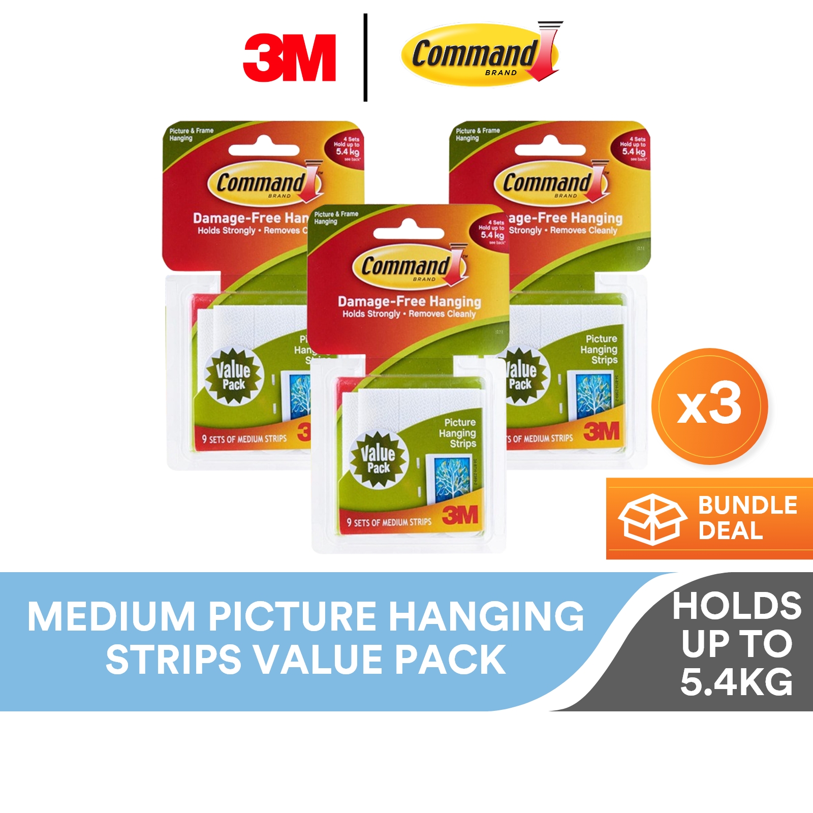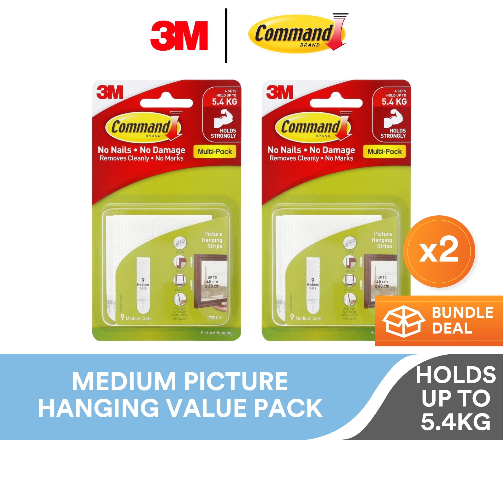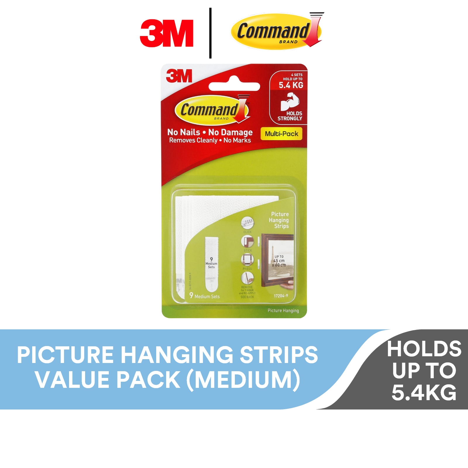 3M Command White Medium Picture Hanging Strips Value Pack, 17204VP, 9/Pack, Holds Up to 5.4kg, 18x24” Frames, Frame, Decor, Artwork