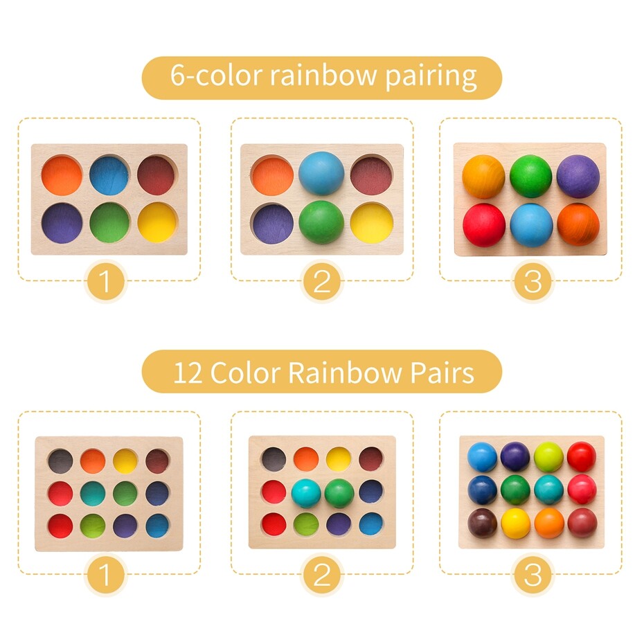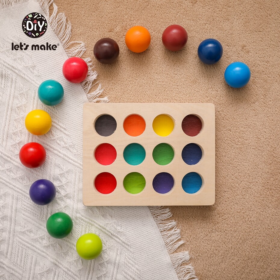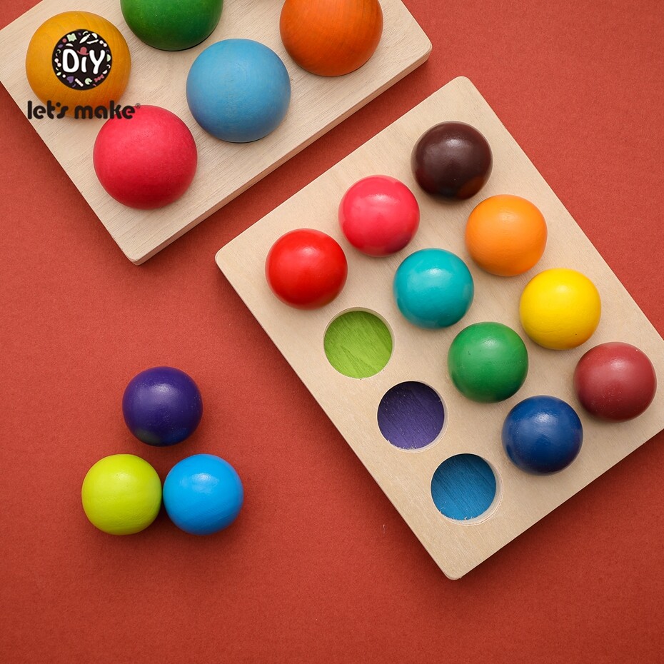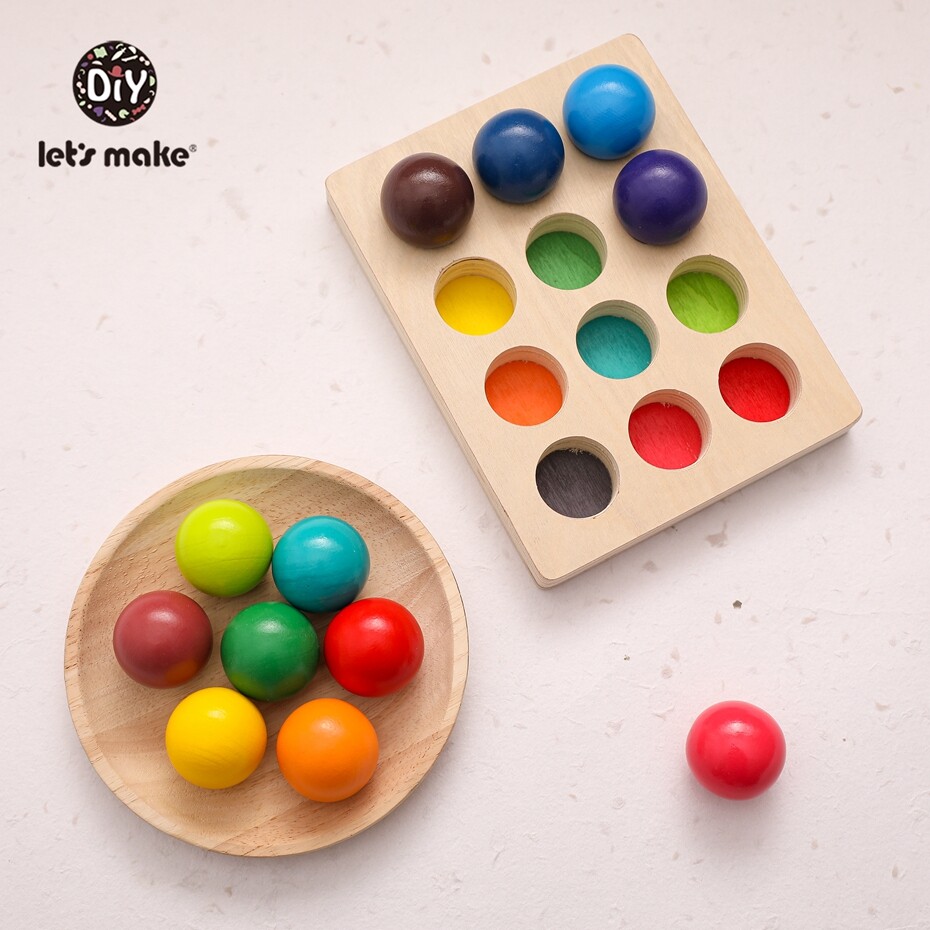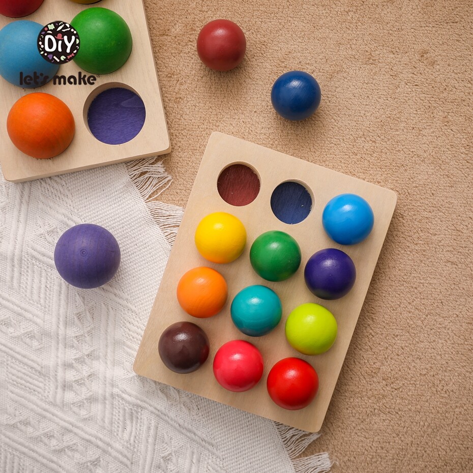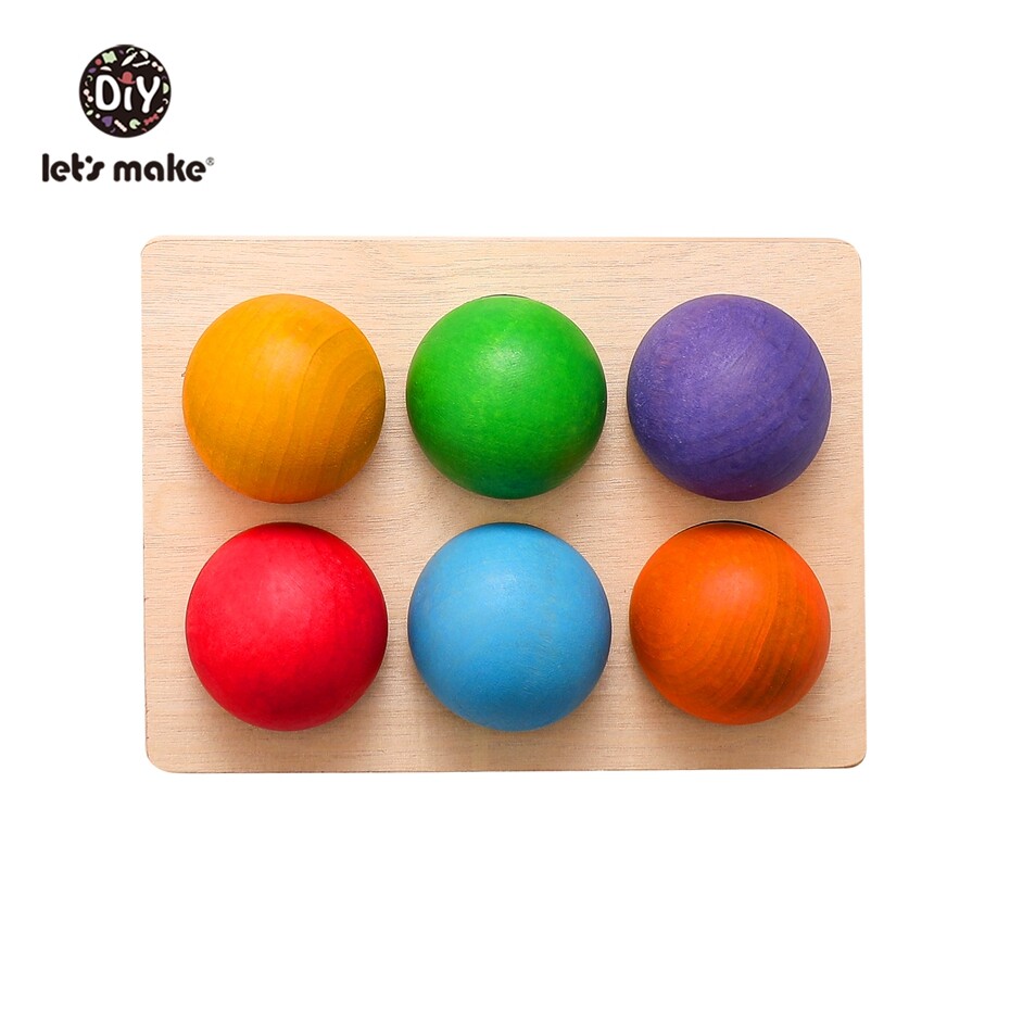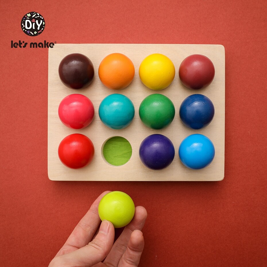 Let's Make Wooden Toy Rainbow Mathching Ball Safe Water Paint Color Cognition Toddler Early Education Toys