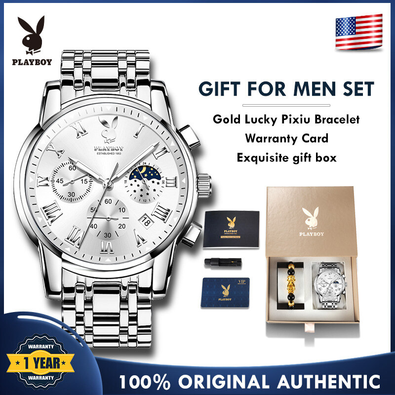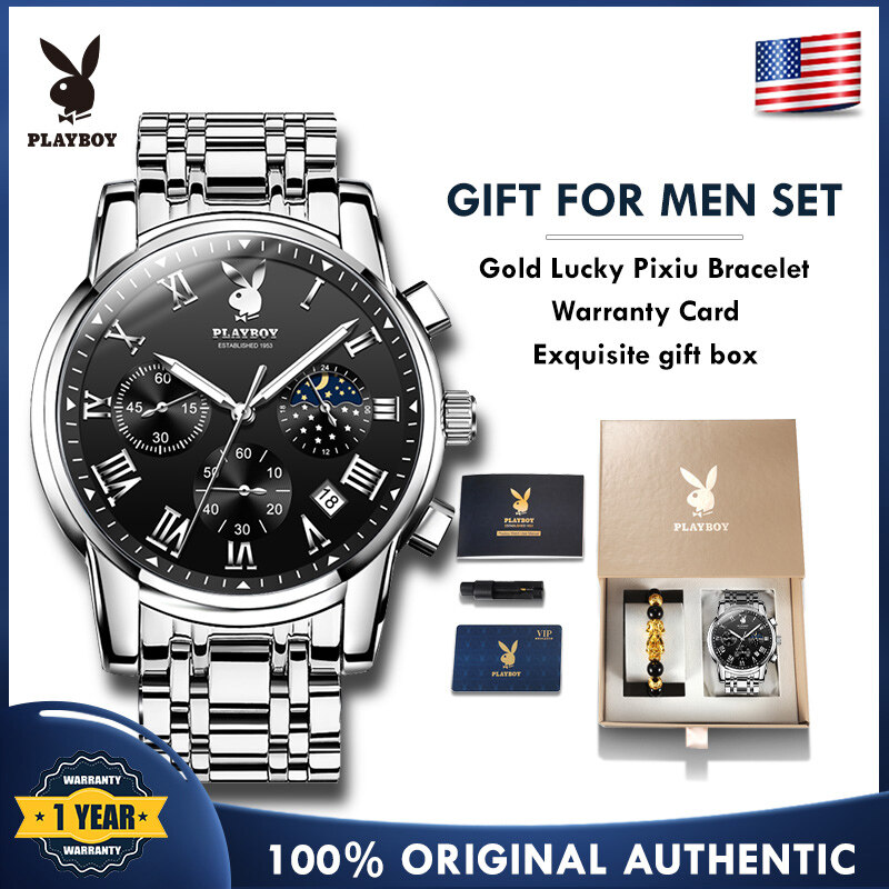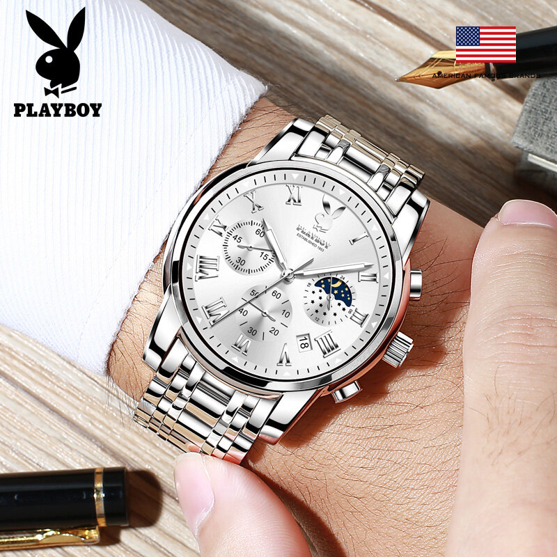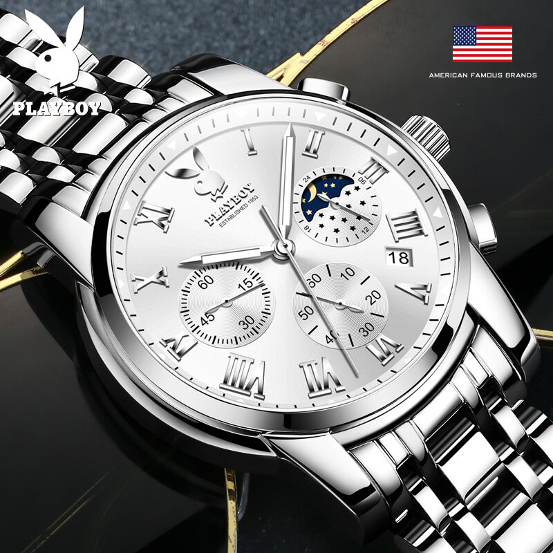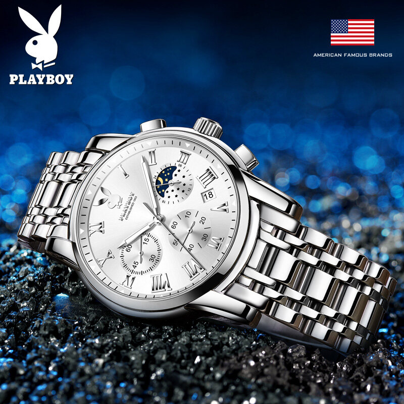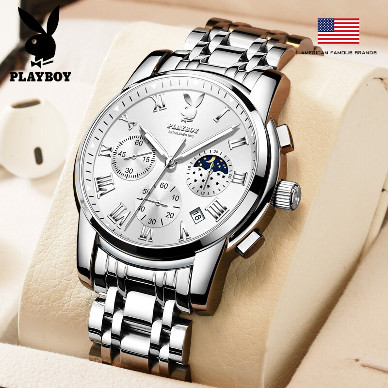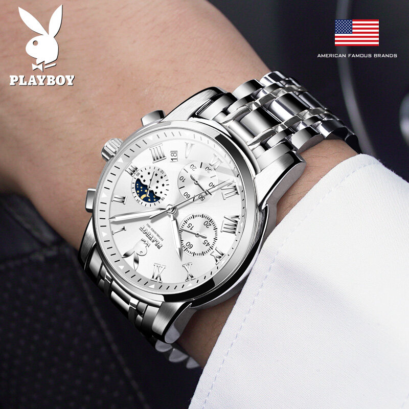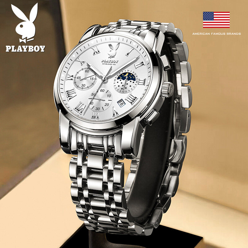 American PLAYBOY Authentic Watch for men 2022 New Waterproof Luxury Multifunction Chronograph Stainless Steel Casual Watch