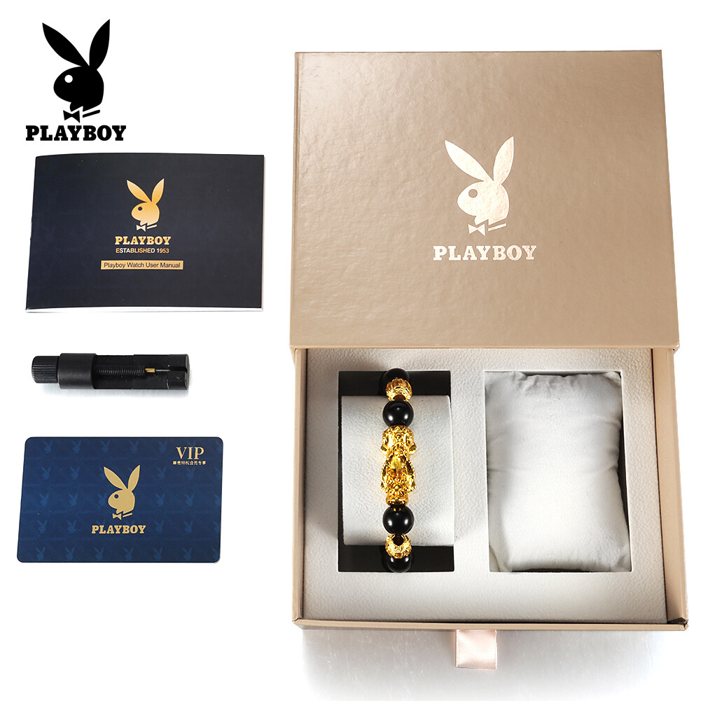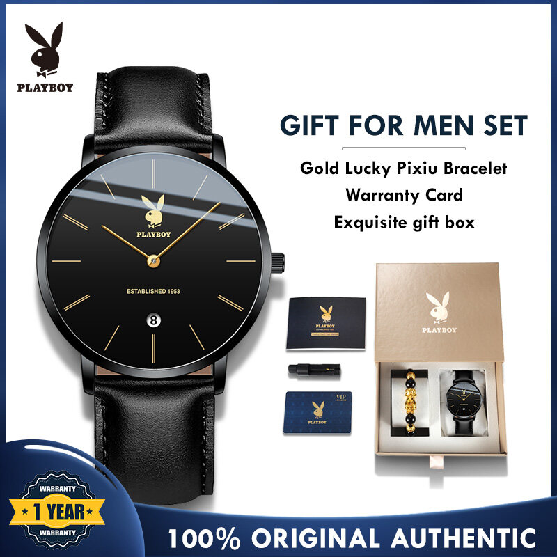 PLAYBOY top watch for men set original 2022 waterproof Japan imported quartz movement genuine leather strap gift for men set with box bracelet