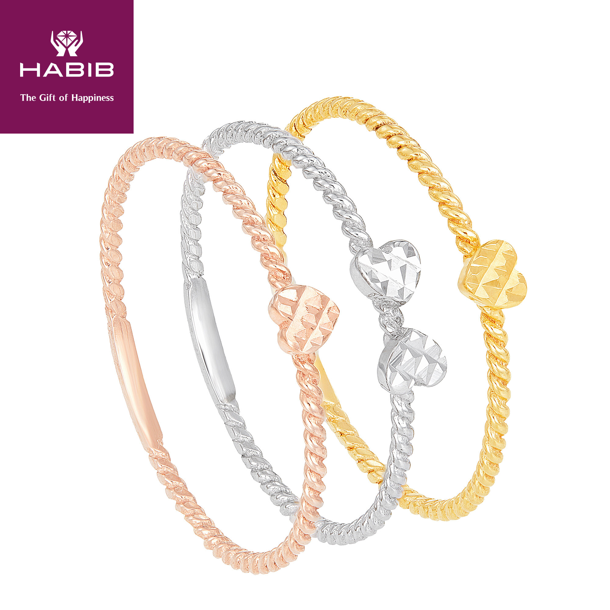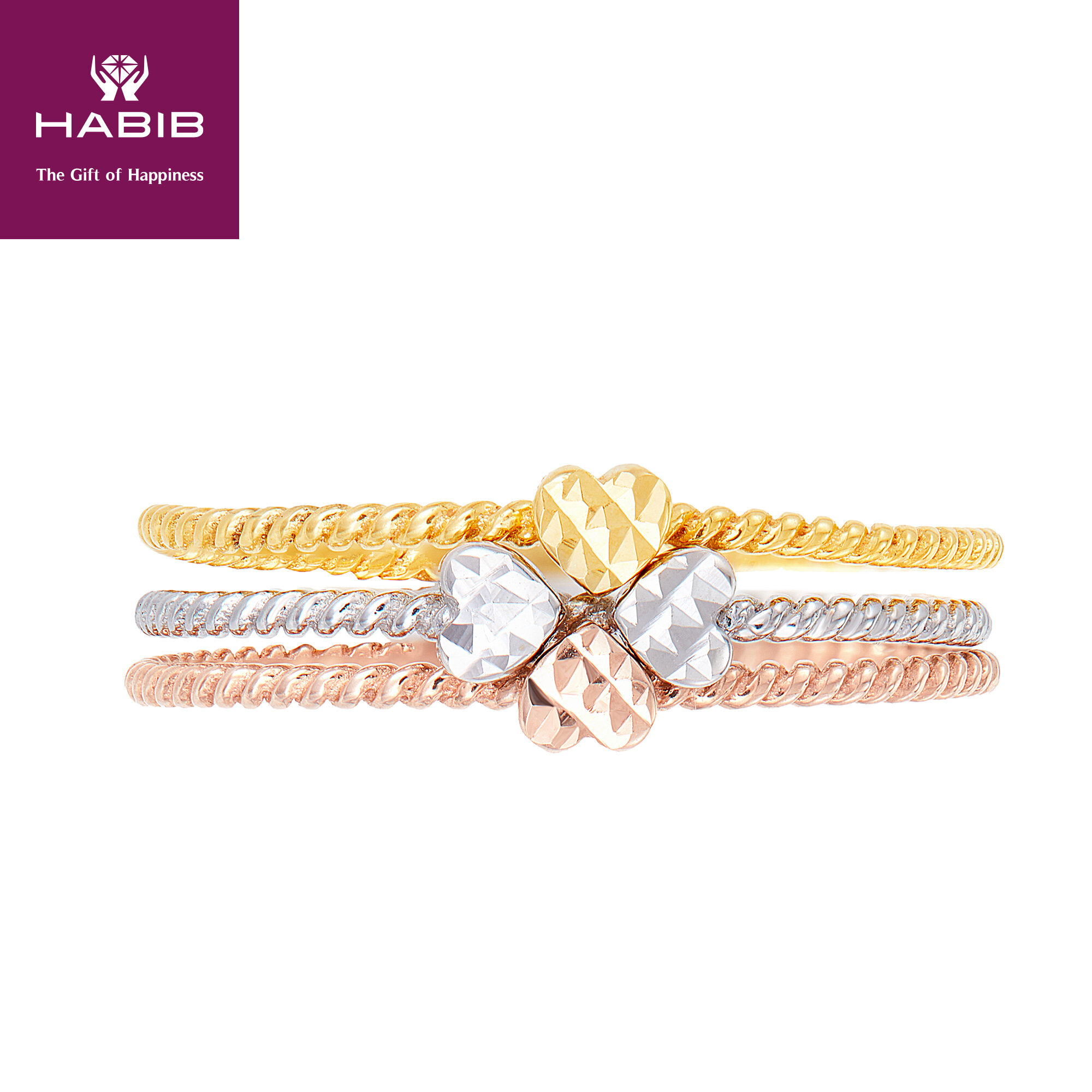 HABIB Oro Italia Strato Clover Tricolour Gold Ring, 916 Gold