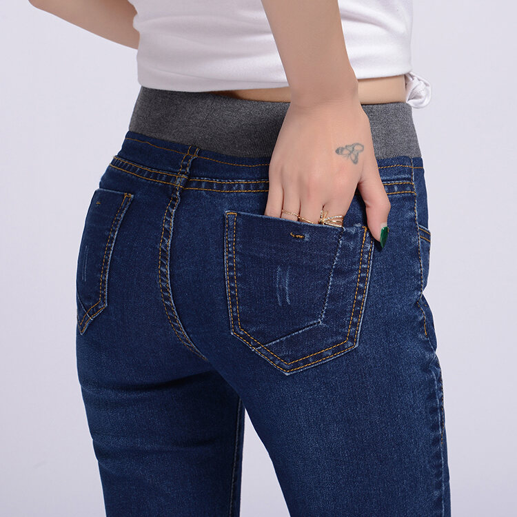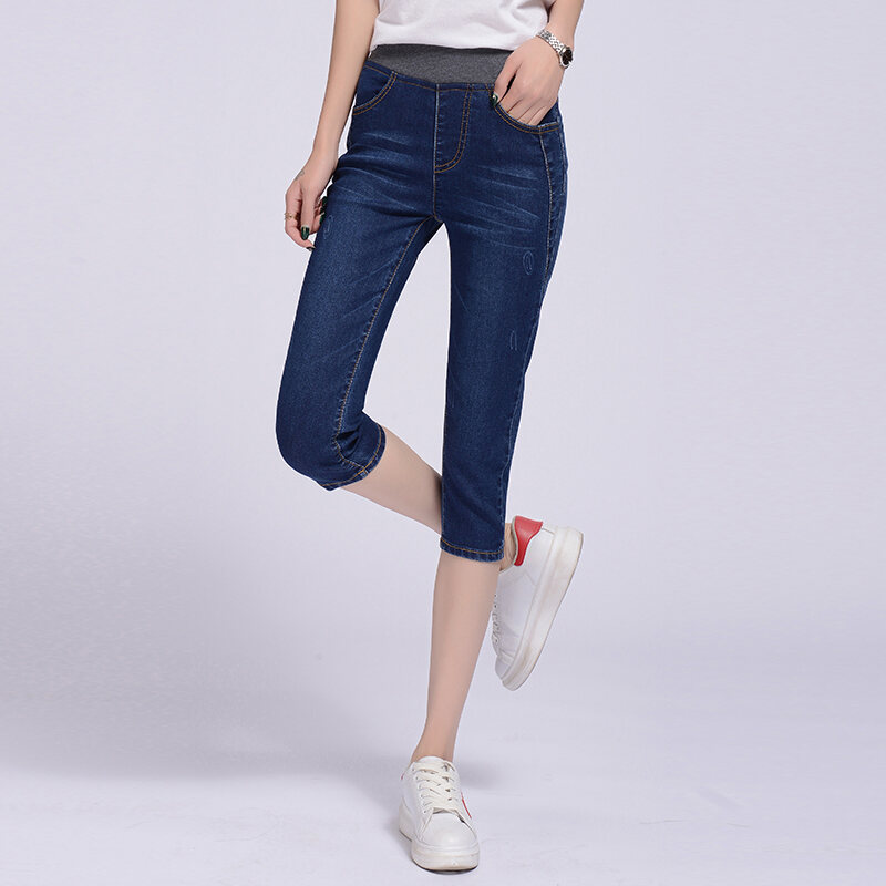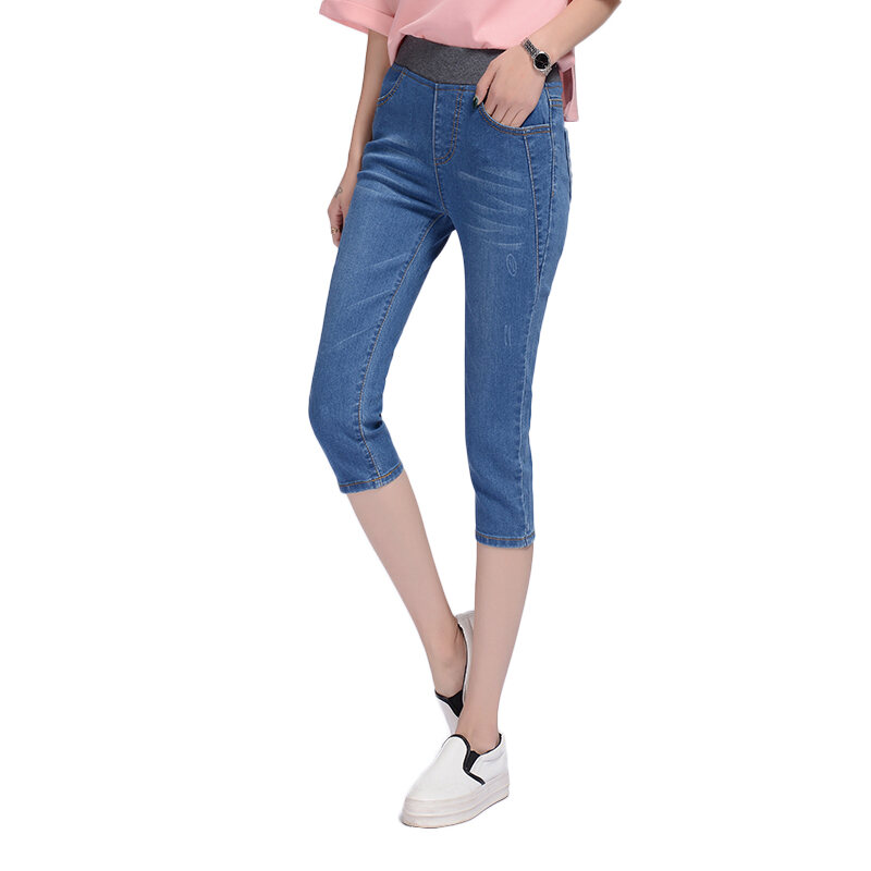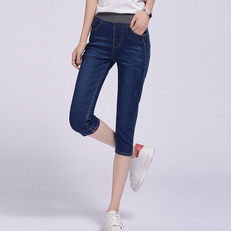 Large Size Elastic Waist Jeans for Women Spring and Summer New Women's Clothing Fat Mm200 kg Stretch Slimming High Waist Cropped Pants Thin