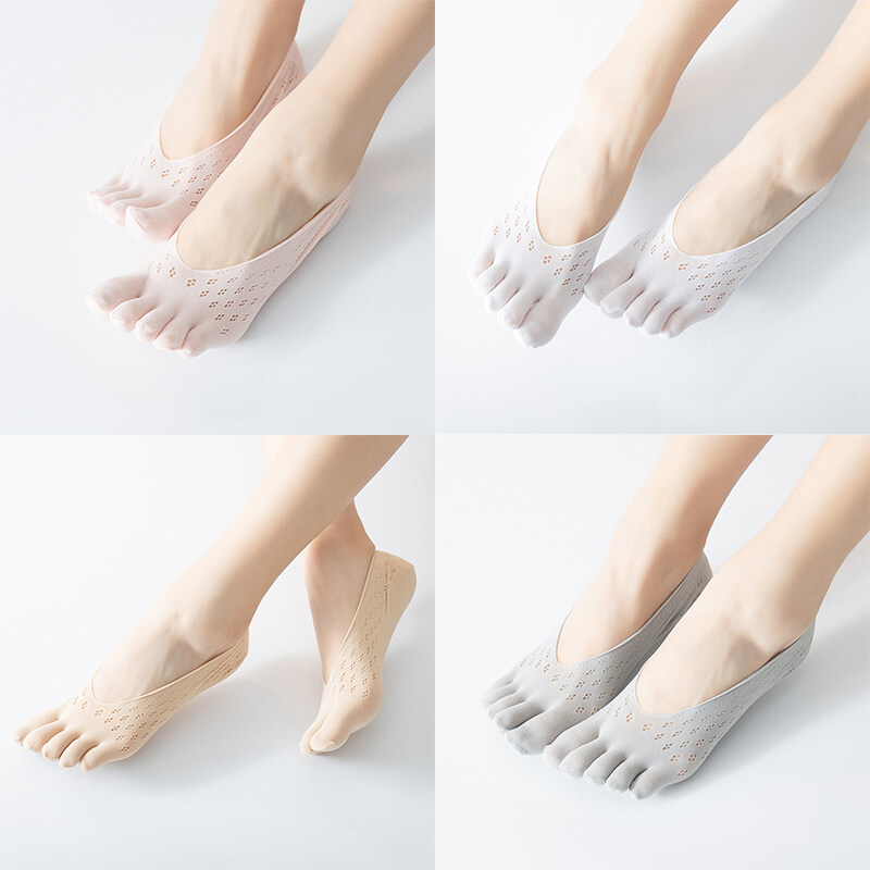 Women Summer Mesh Breathable Five Fingers Socks Slippers Ladies Girls Anti-Skid Silicone Invisible Low Cut Socks