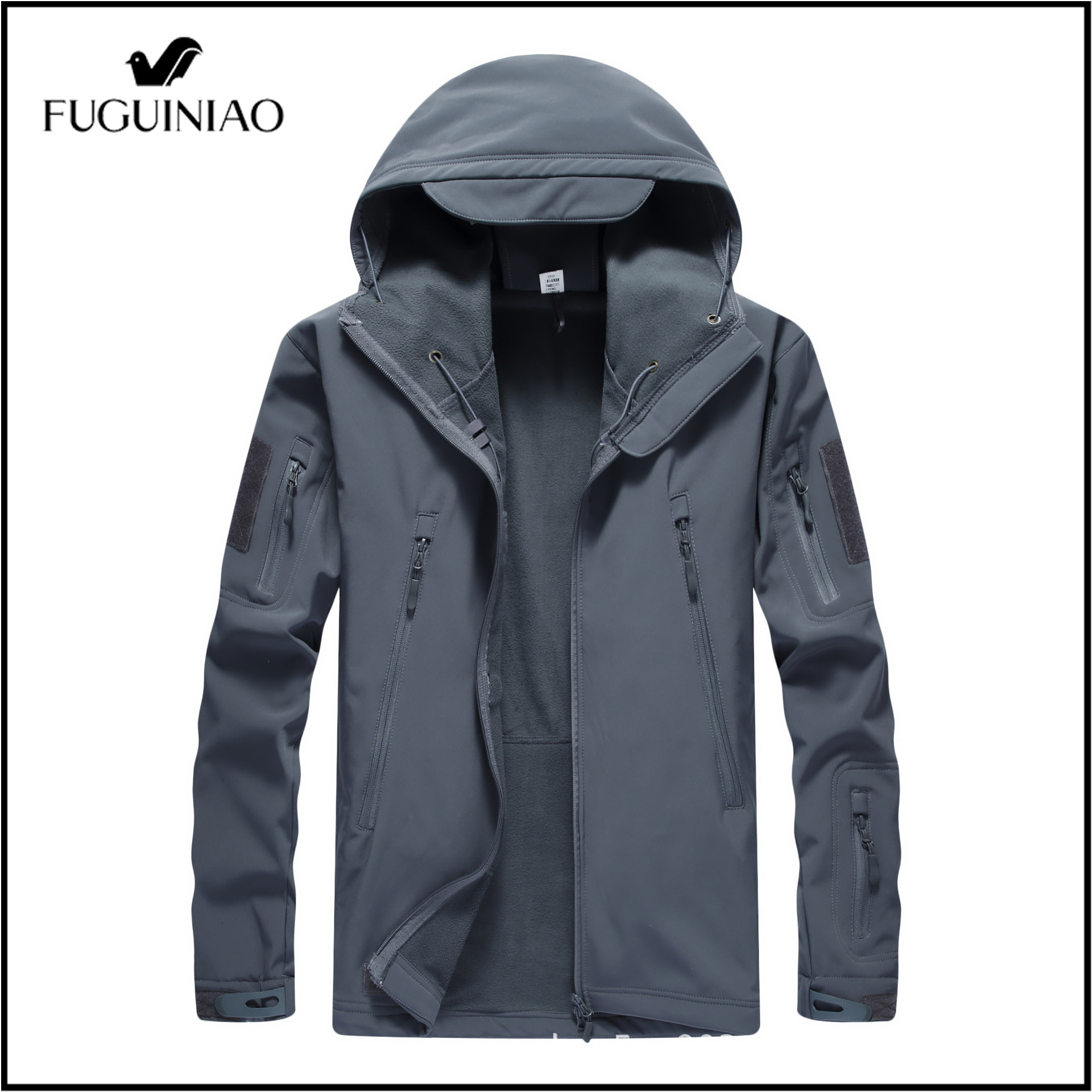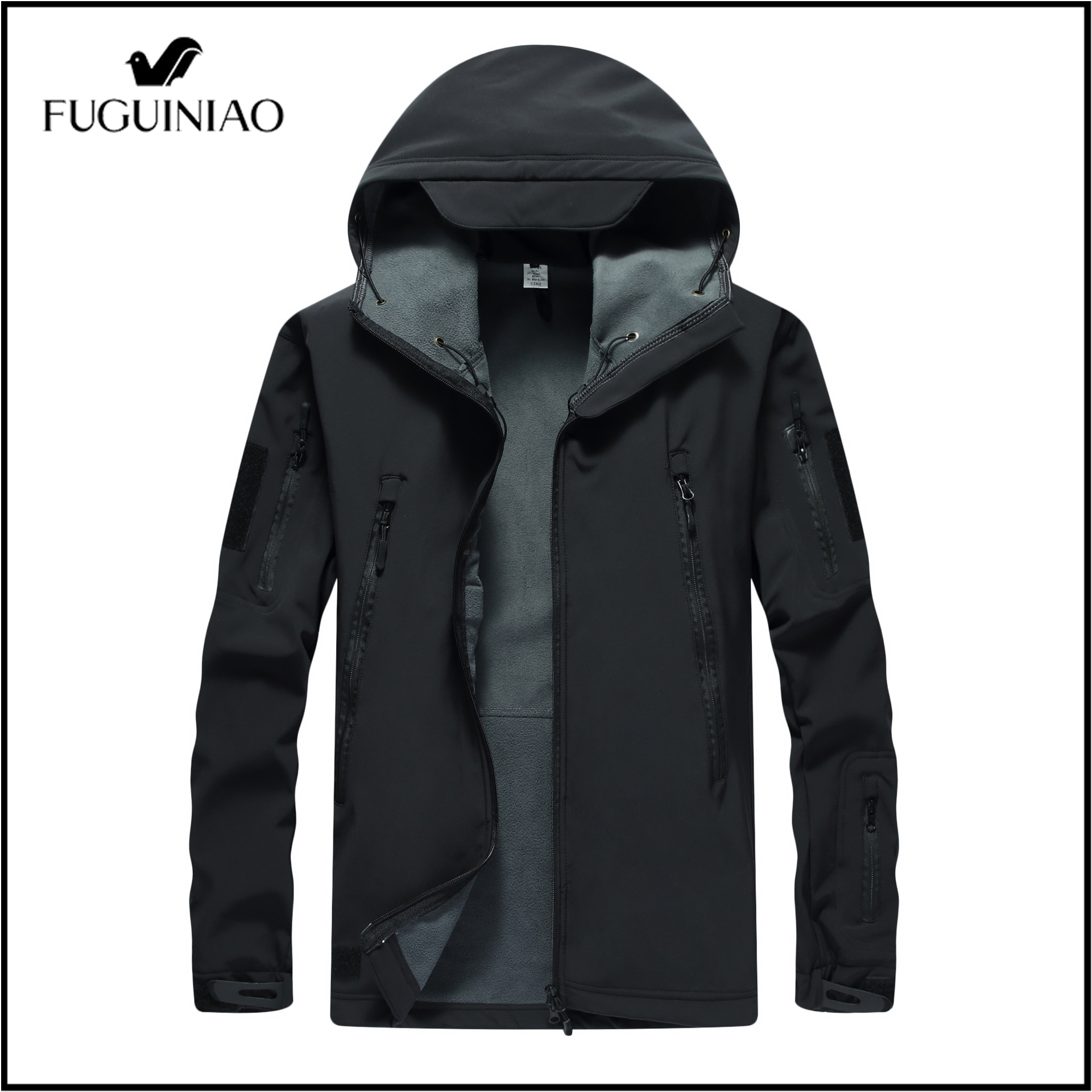 FUGUINIAO Men Outdoor Hiking Jackets Coats Hooded Casual Military Jacket Men Windbreaker