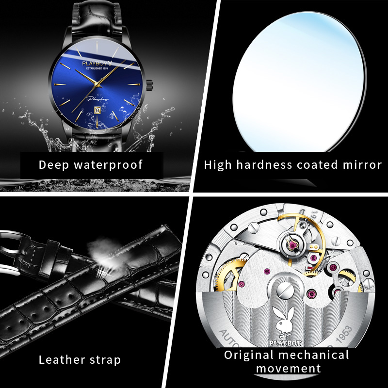 PLAYBOY Watch For Men Authentic Original Fashionable Imported Automatic Mechanical Watch Casual Sports Waterproof Simple Calendar