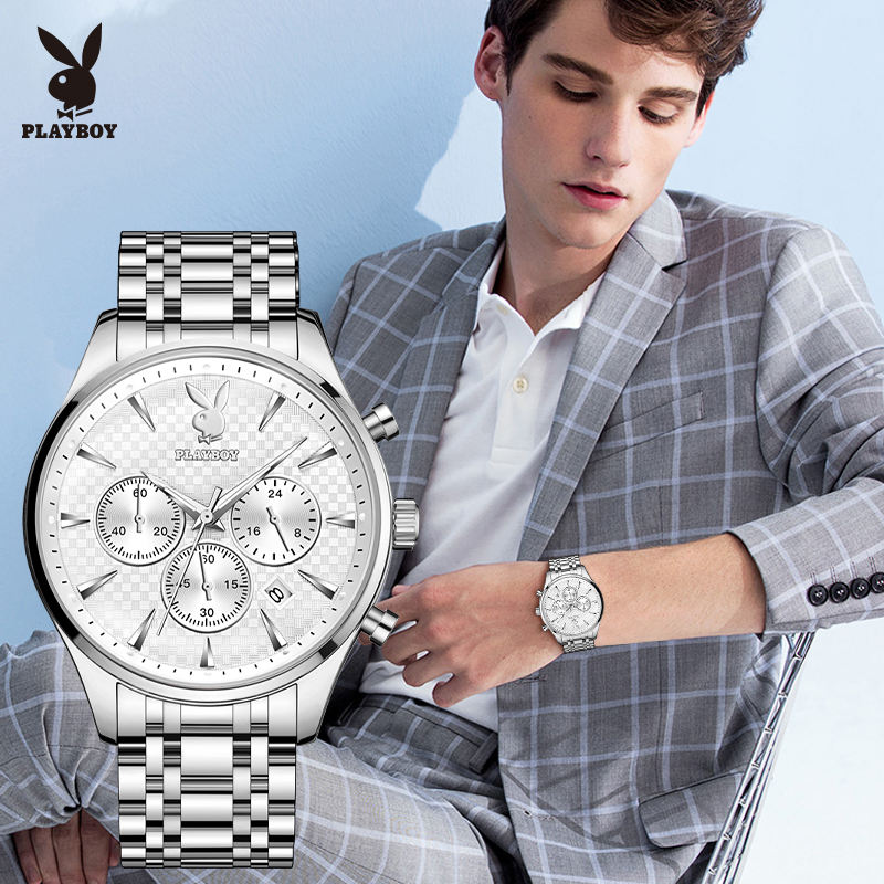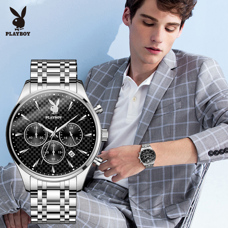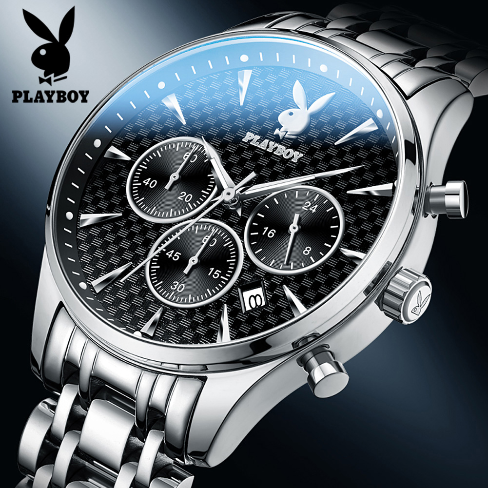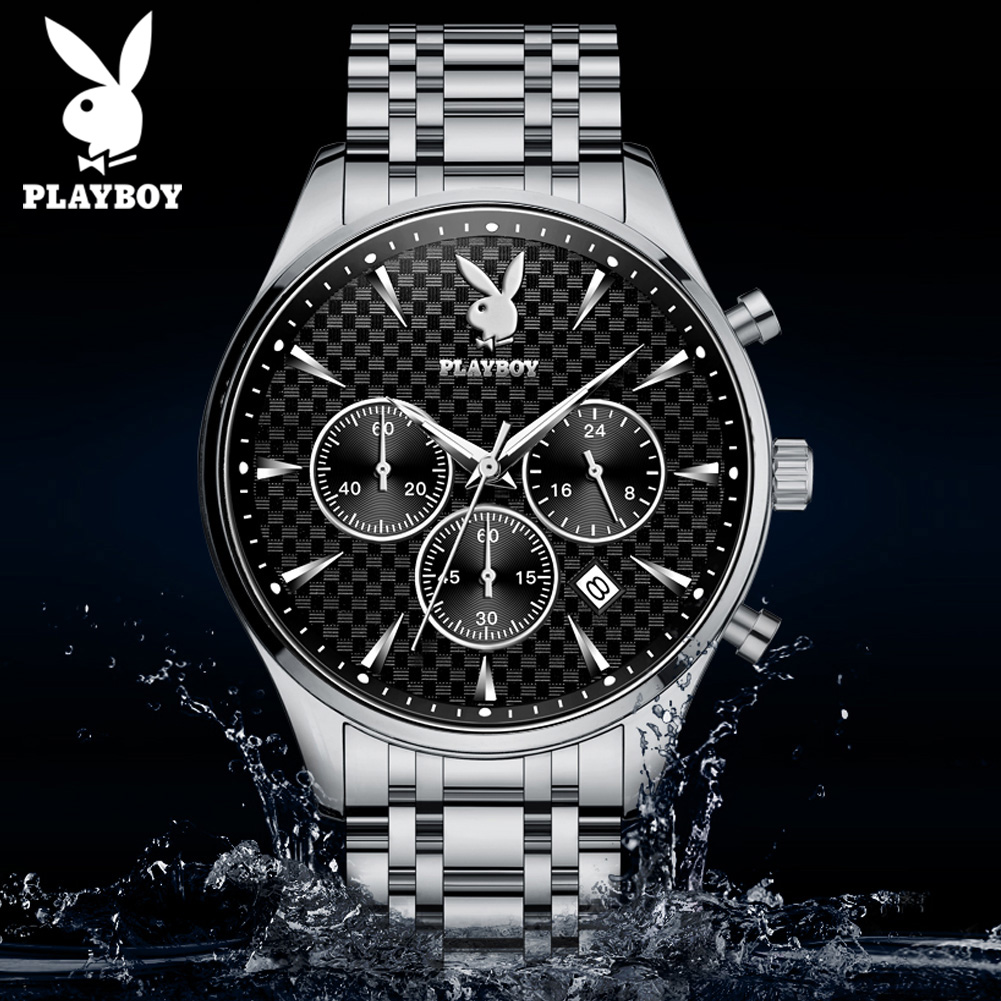 Top PLAYBOY Business Watch for Men Original 2022 Waterproof Luxury Stainless Steel Multifunction Chronograph Quartz Wristwatch