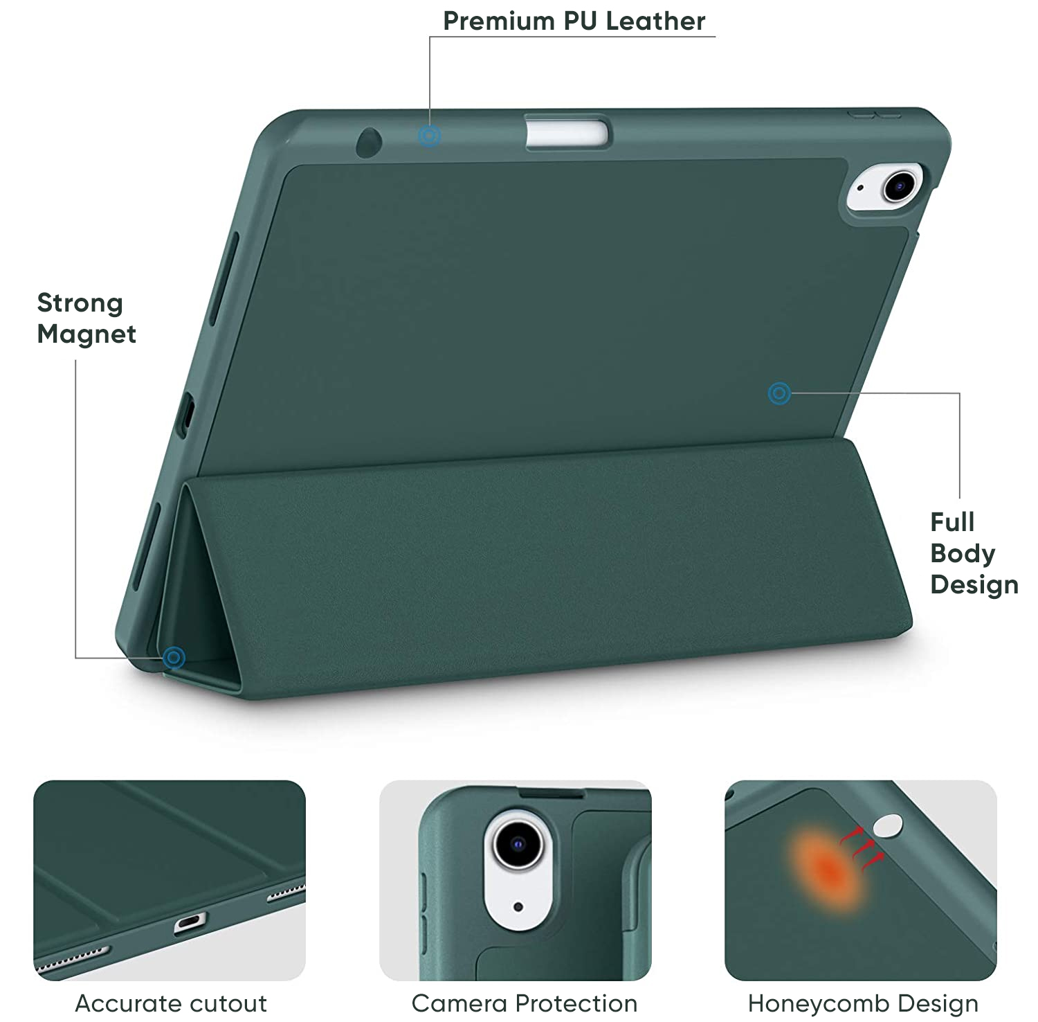iPad Premium Leather CaseMagnetic Sleep And Wake Function6 Beautiful ColorsPencil Holder On Right Side For Perfect ChargingMade Of Full Leather On Front And BackViewing And Typing Stand