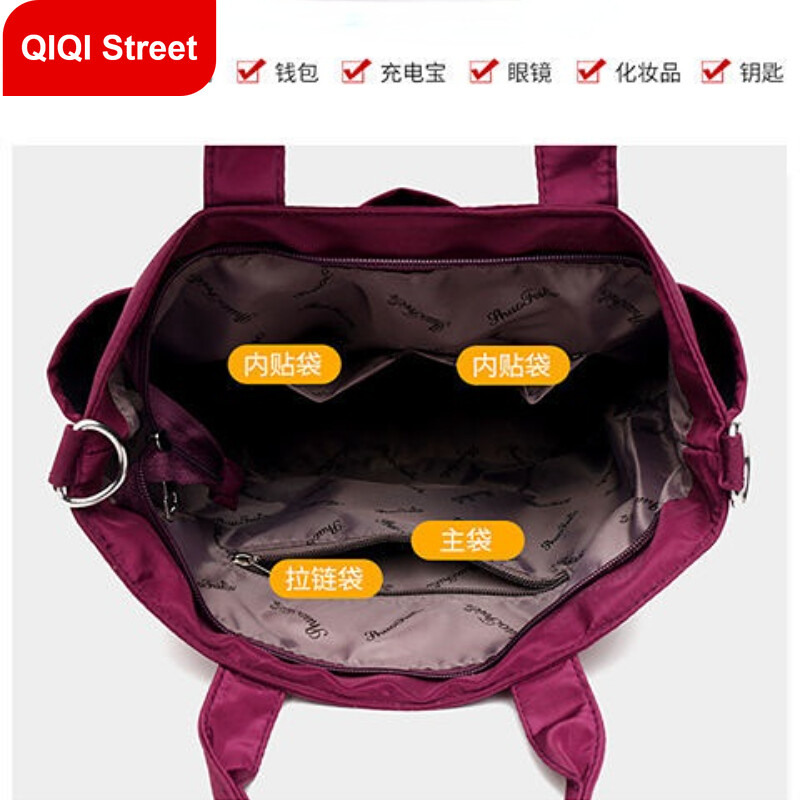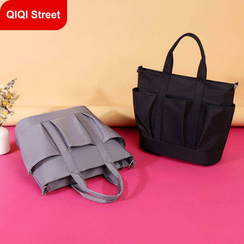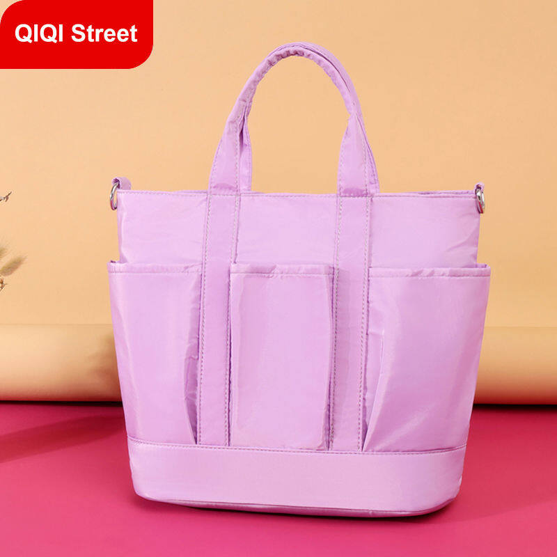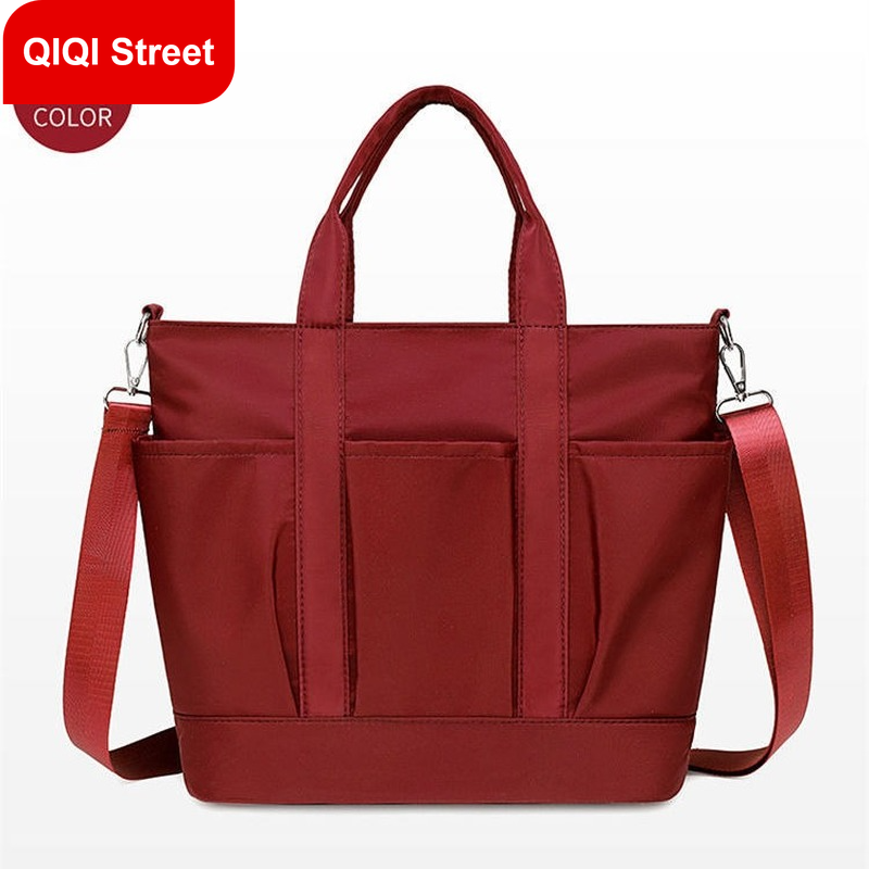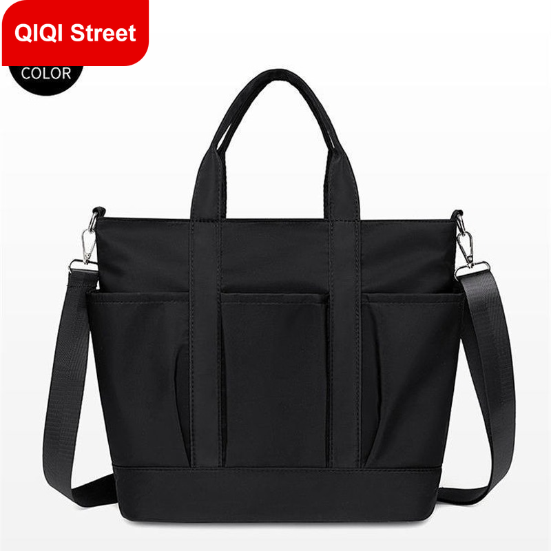 nylon cloth tote bag, Large cloth bag hand bag, solid color versatile multi-pocket Oxford cloth mother bag, work bag, Korean simple literary shoulder bag, handbag, messenger bag