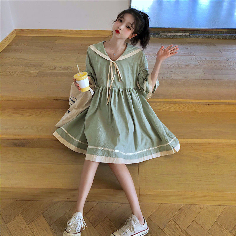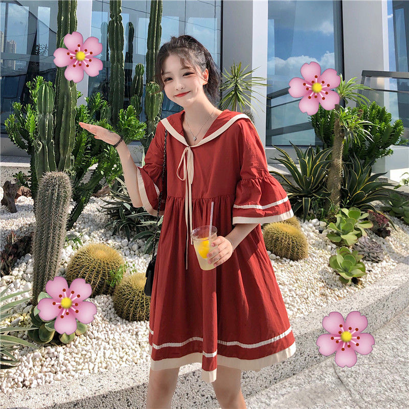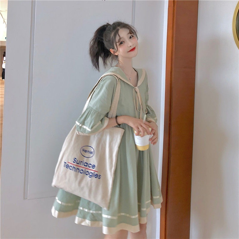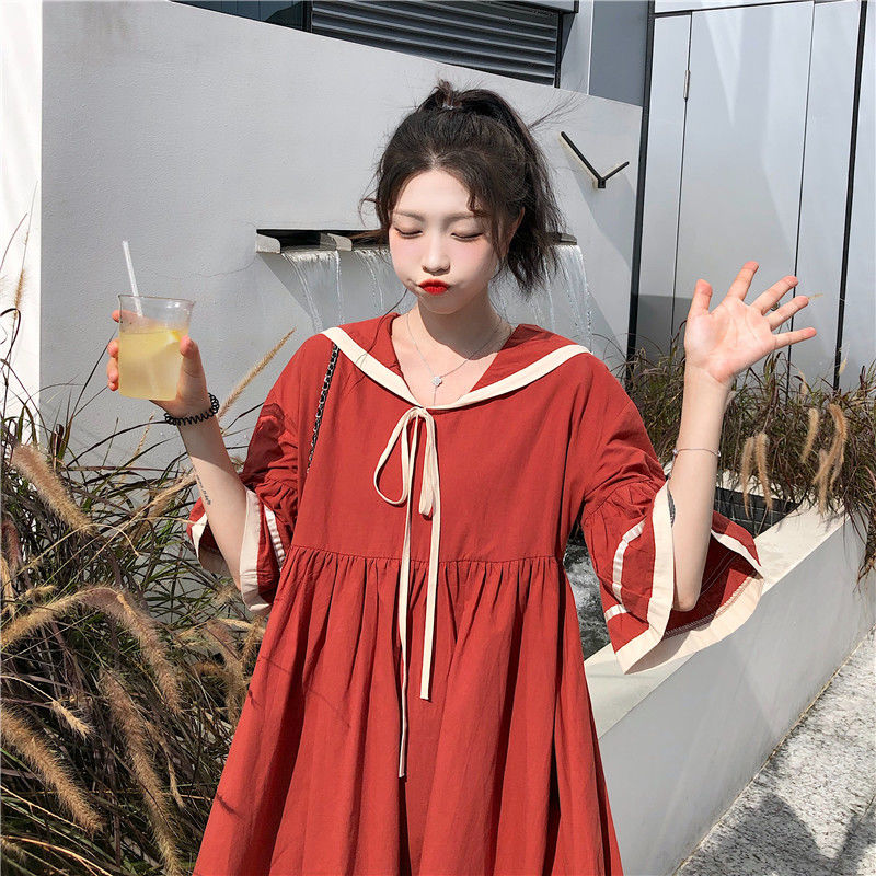 Dress Female Summer Student College Style Korean Version Loose Navy Collar Flared Sleeve Cute Sweet Dress Small