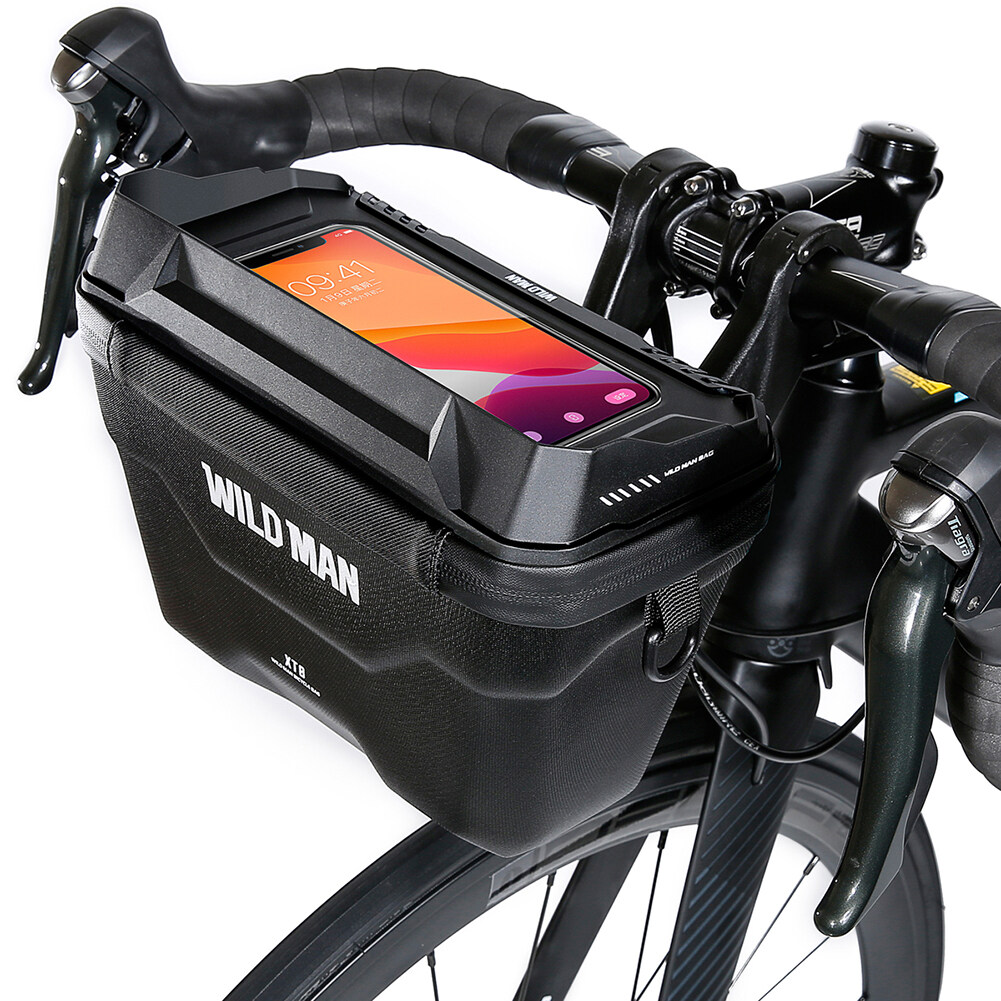WILD MAN 3L Bicycle Bag Mountain Bike Handlebar Head Bags EVA Hardshell Rainproof MTB Cycling Pannier Touch Screen Electric Scooter Phone Camera Pouch for M365