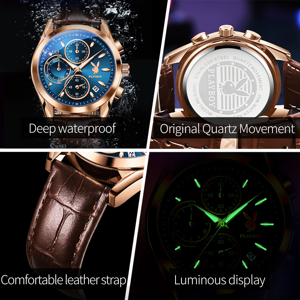 PLAYBOY Watch for men waterproof sale original seiko fashion handsome multifunctional business men imported quartz calendar
