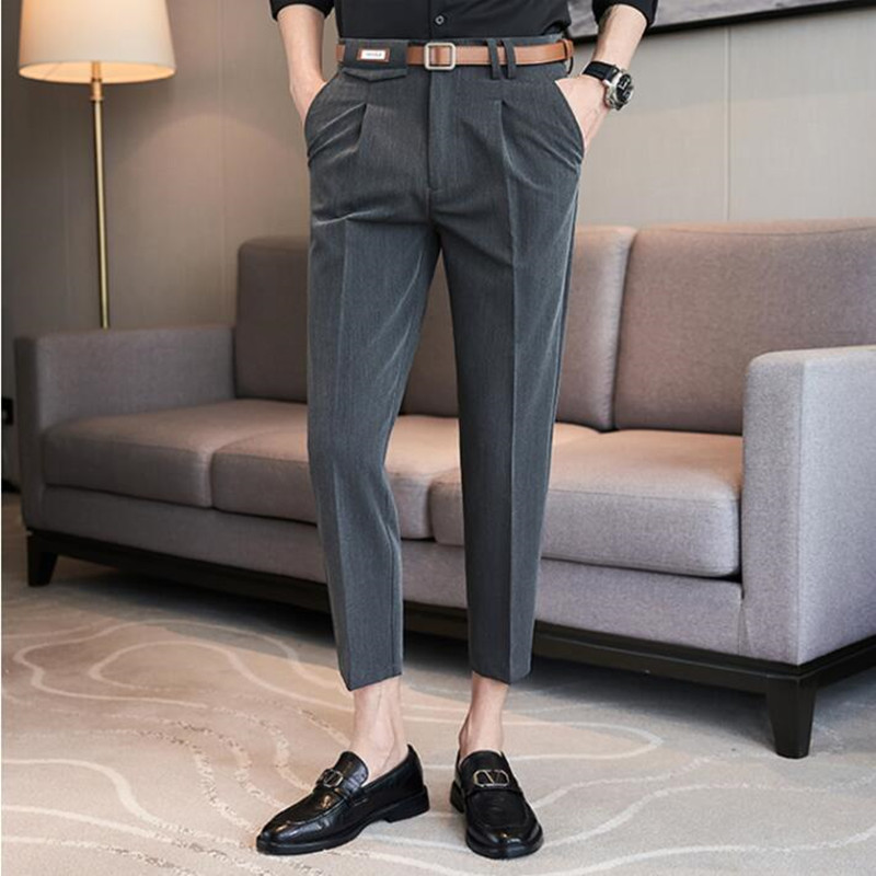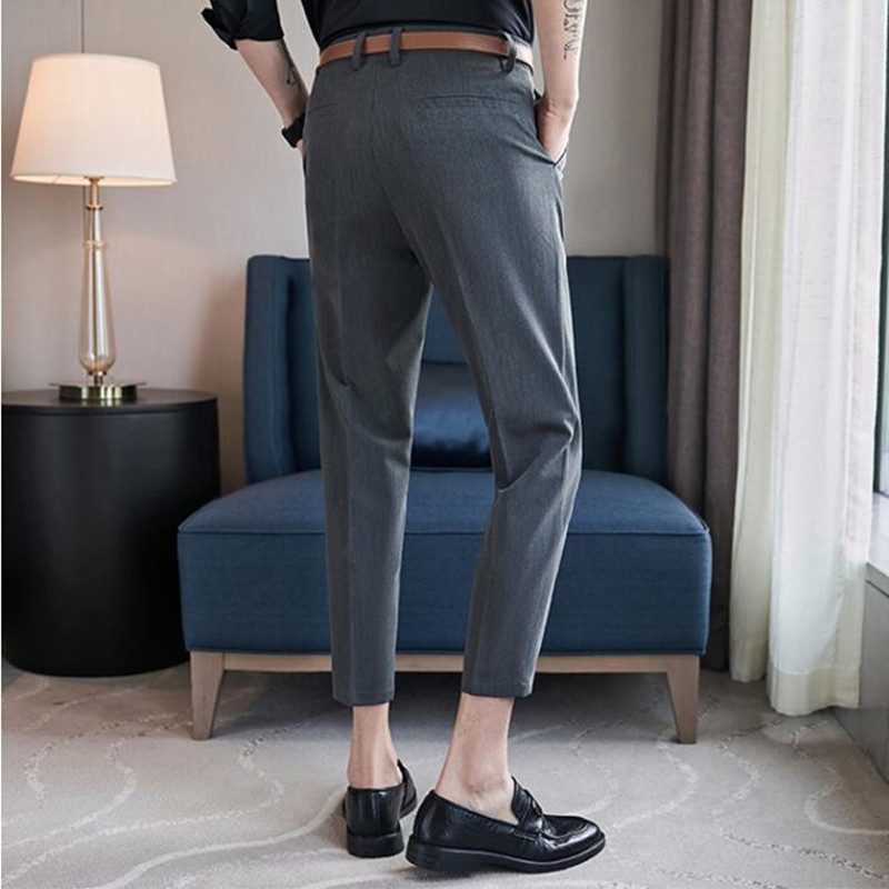BULUOLANDI Summer Fashion Mens Pants Slim Fit Business Casual Long Trousers Office Men's Skinny Suit Pants Solid Color Trousers 28-36