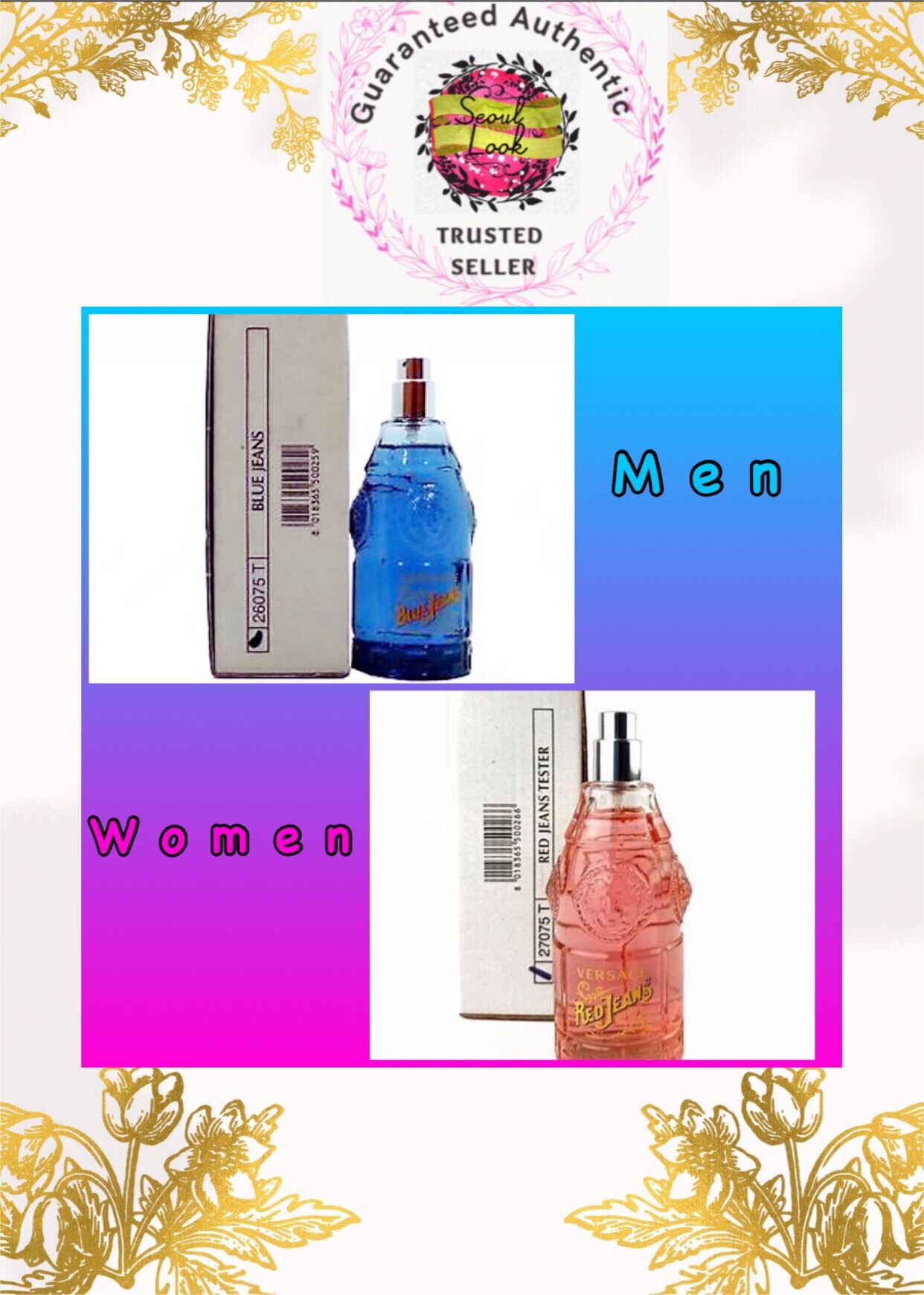 Versace Blue Jeans Man EDT 75ml / Versace Red Jeans Woman EDT 75ml (Tester W/O Cap & Retail Packaging) - BNIB Perfume/Fragrance