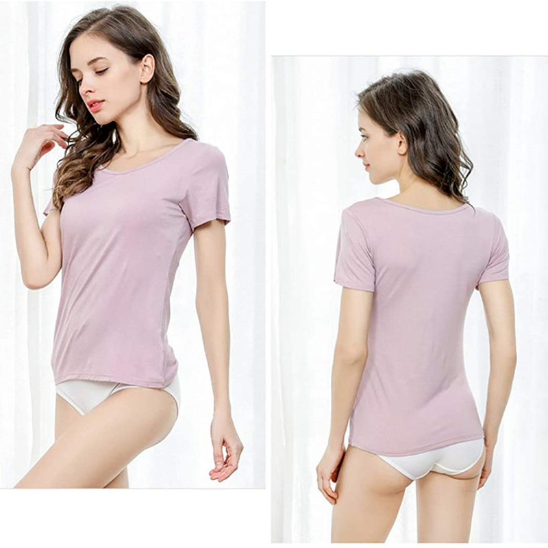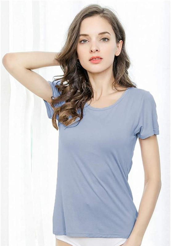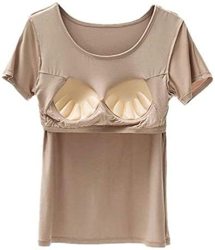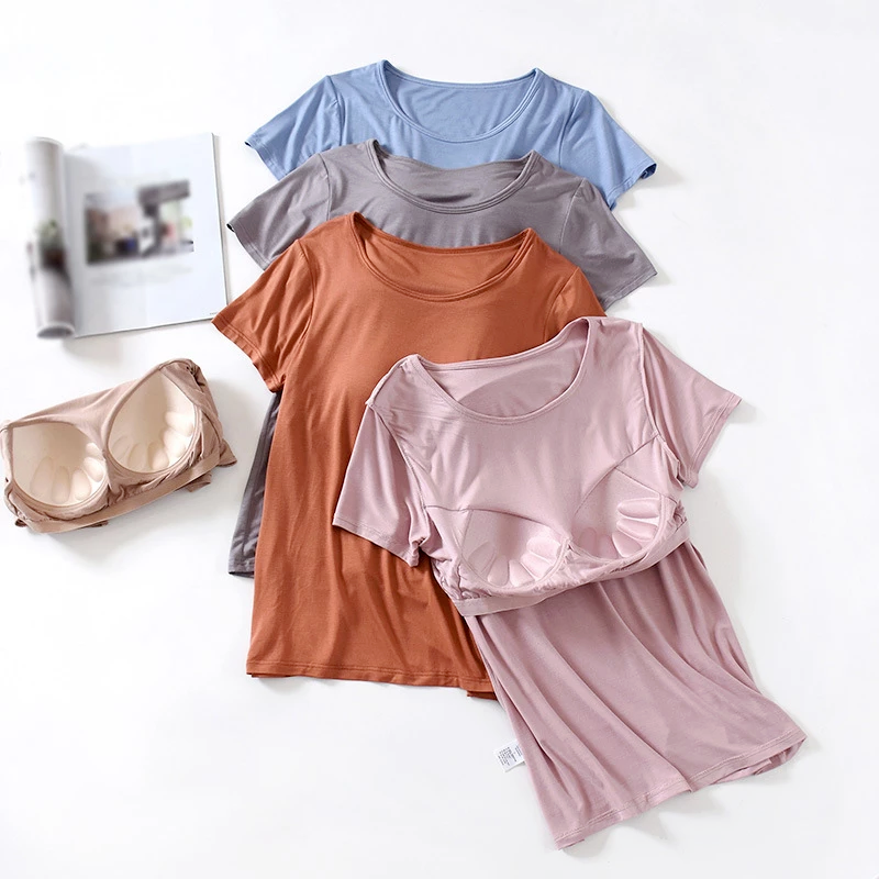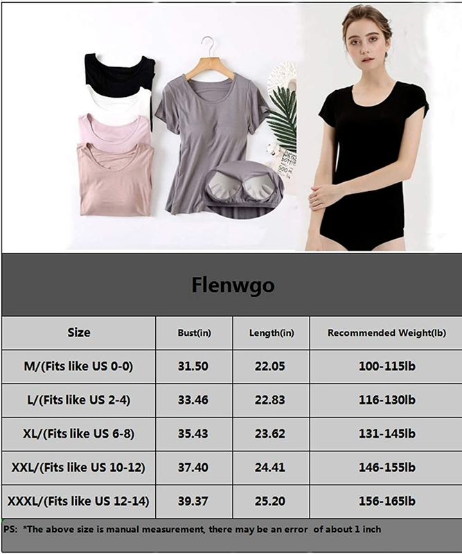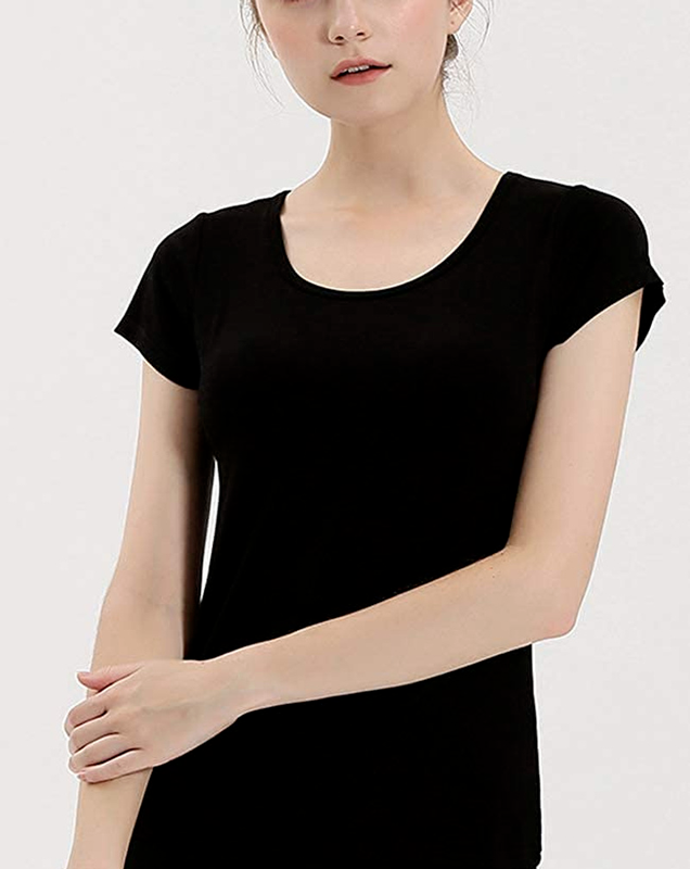 - Features: Built-in shelf padded bra for women, solid color, short sleeve, scoop neck.