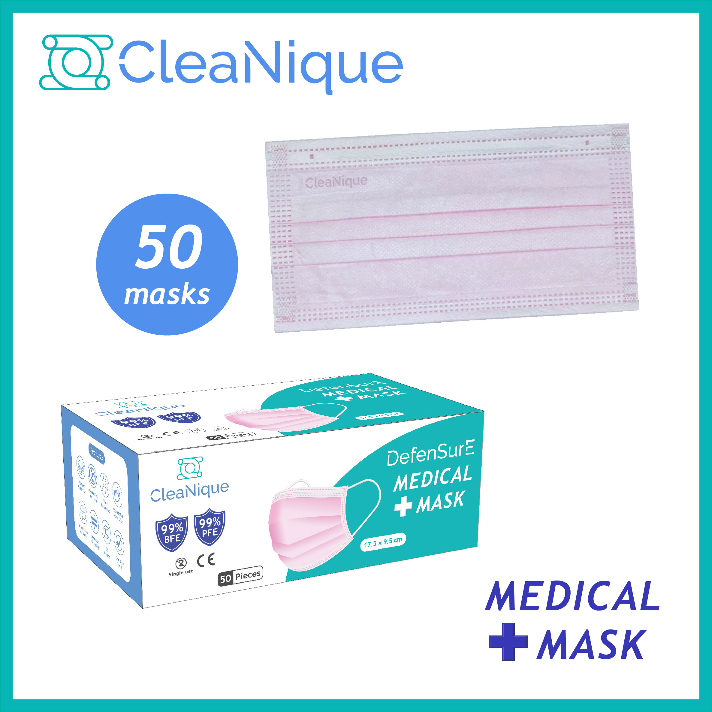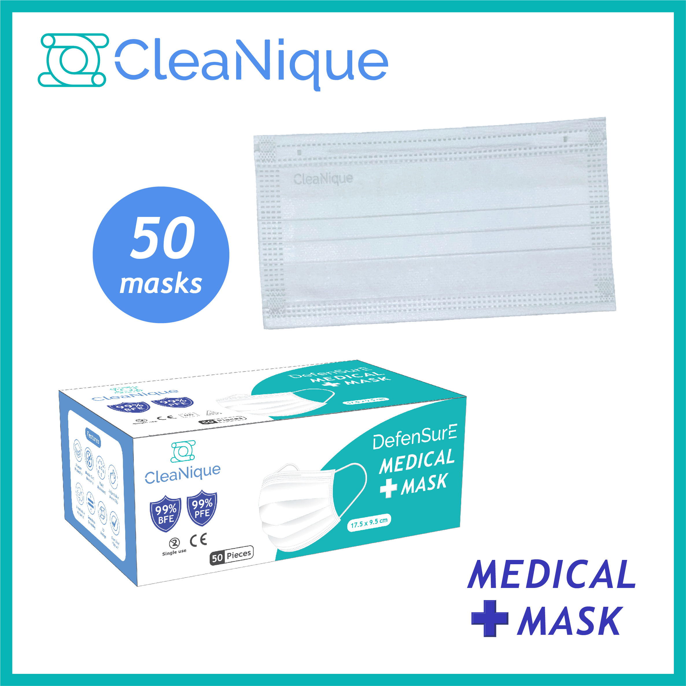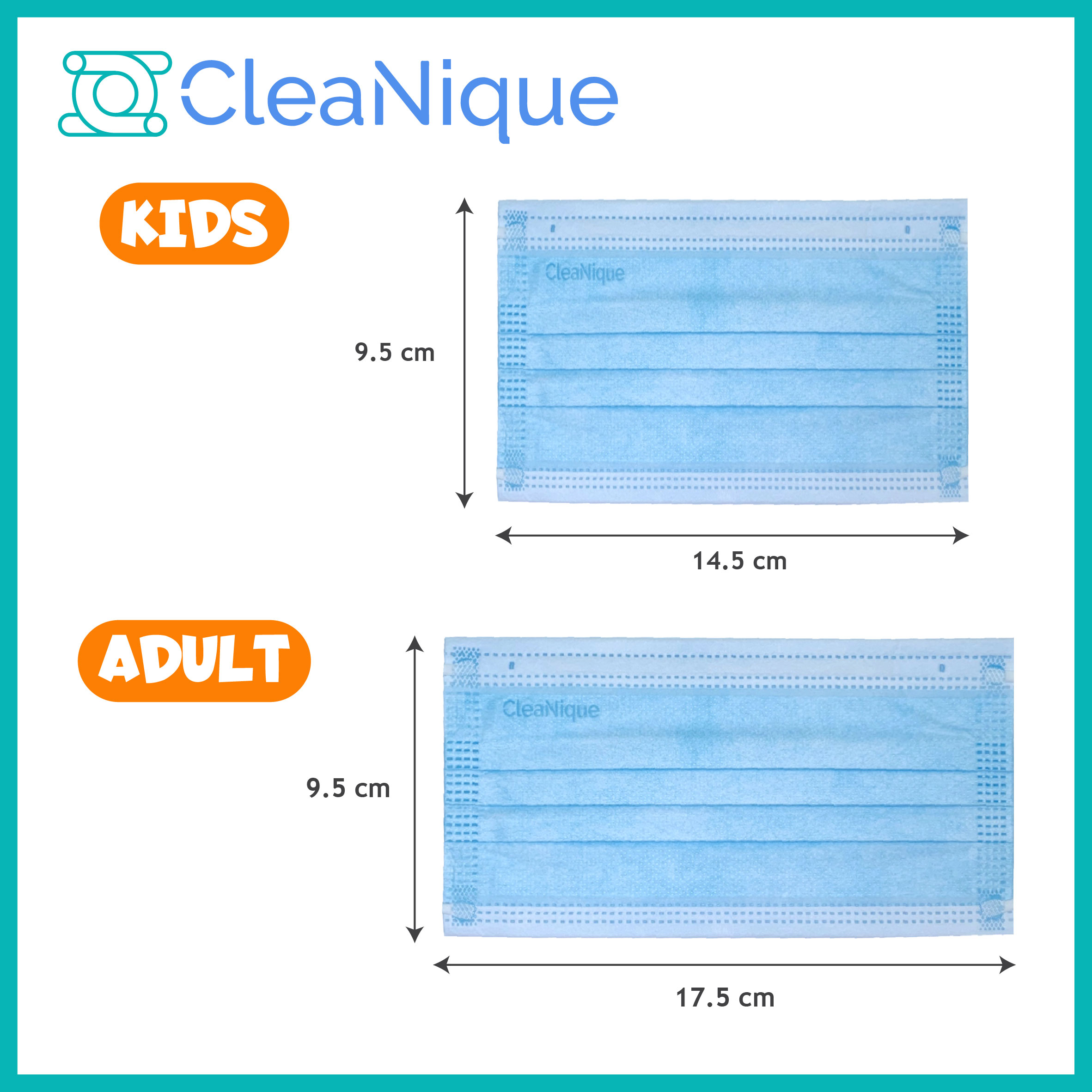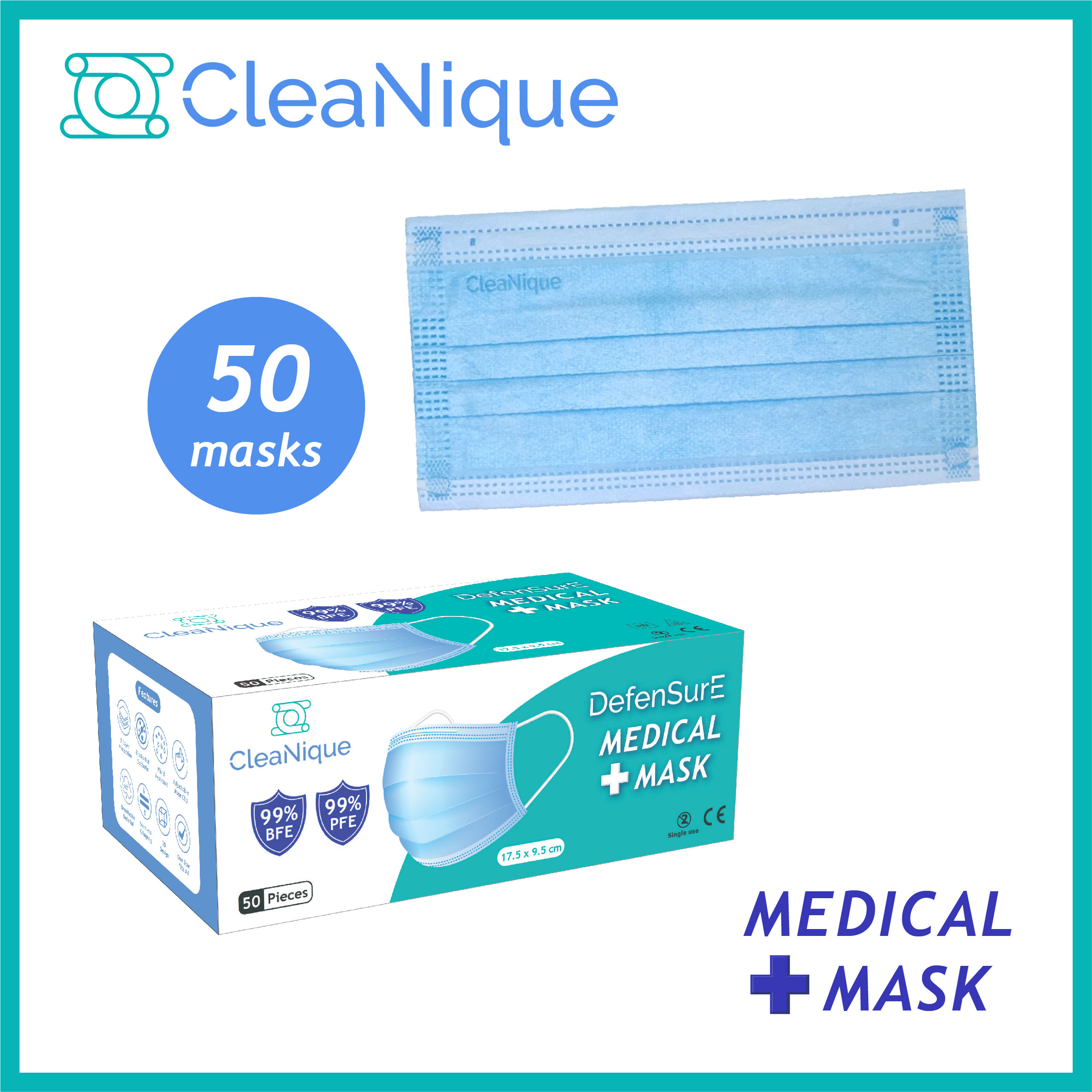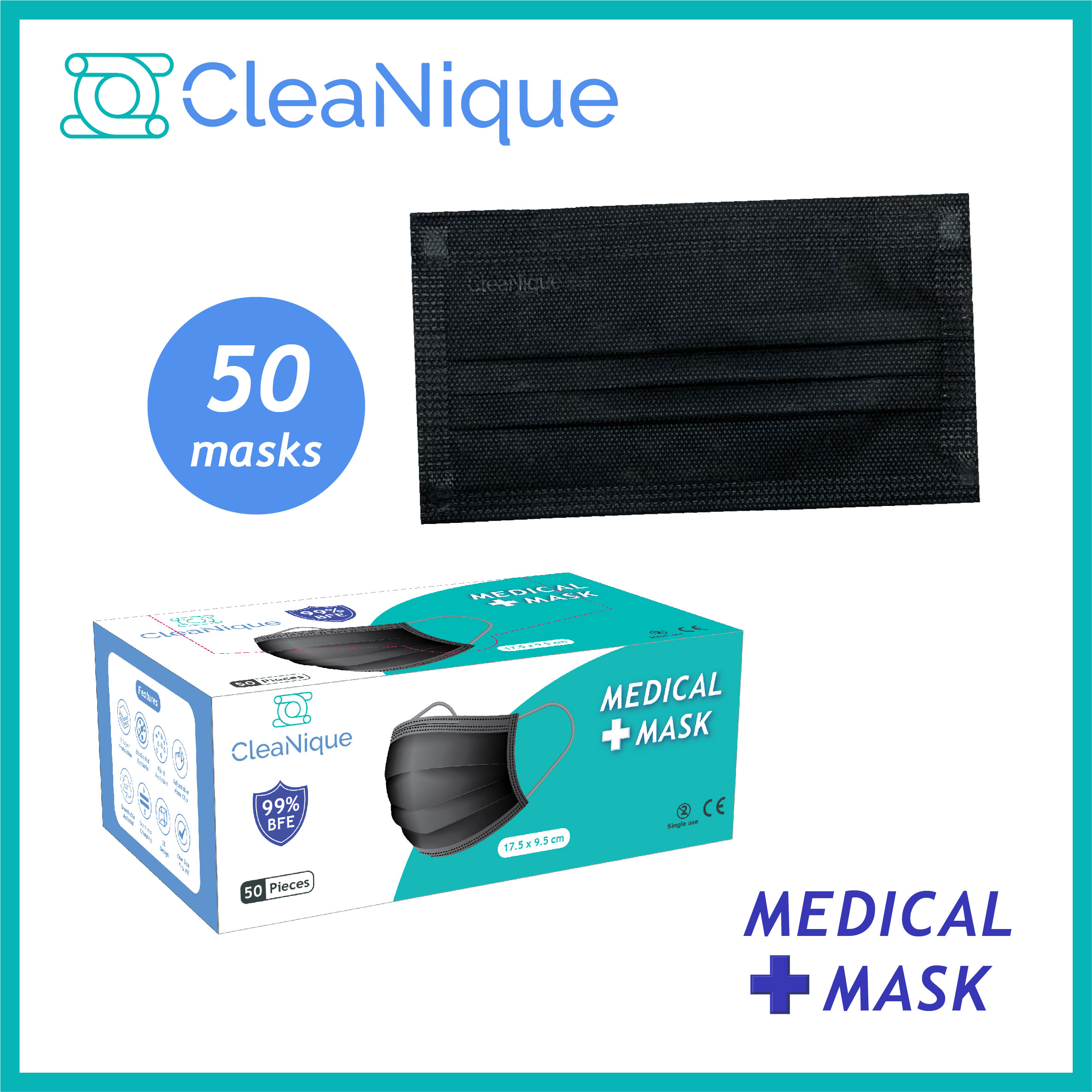CleaNique 3-Ply * Black/Blue * Medical Face Mask EN 14683 SGS BFE 99% Flat Ear Loop 50 Pcs