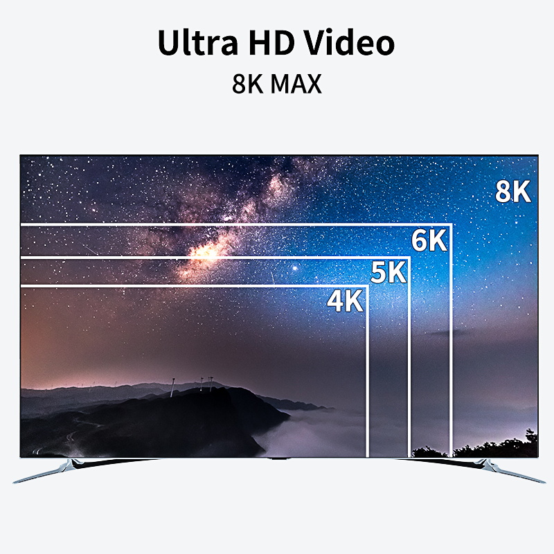 Play video on a single monitor at up to 8K resolution. If you have 2 cables, you can connect to 2 monitors to enjoy dual 4K displays.