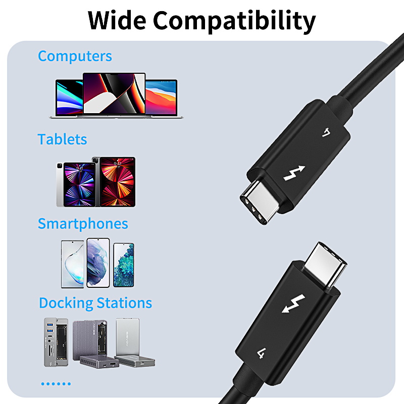 Supports Max 100W Powerful Charging, 40Gbps Fast Data Transfer, and 8K Media Display