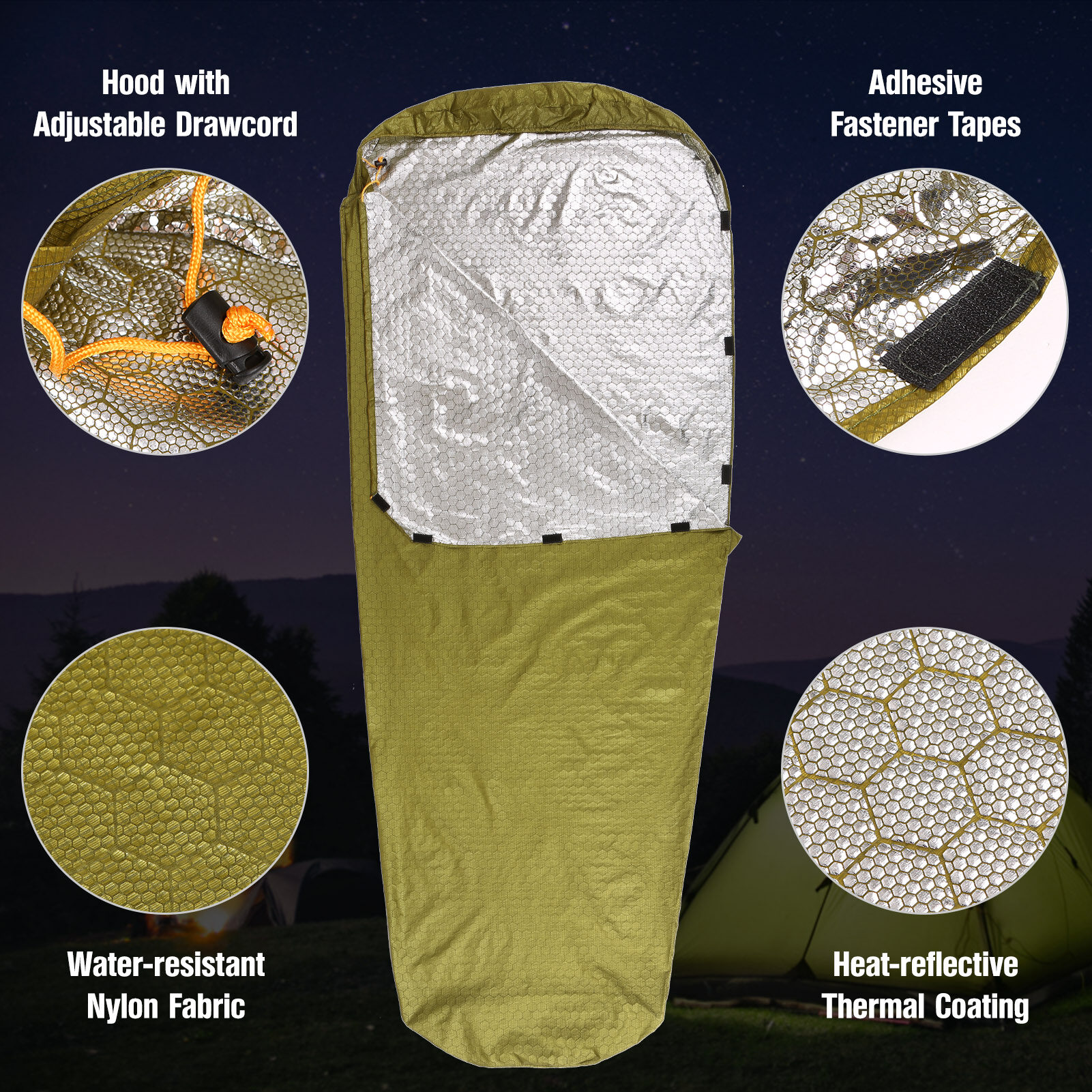 Emergency Sleeping Bag Lightweight Waterproof Thermal Emergency Blanket Survival Gear for Outdoor Adventure Camping Hiking Backpacking
