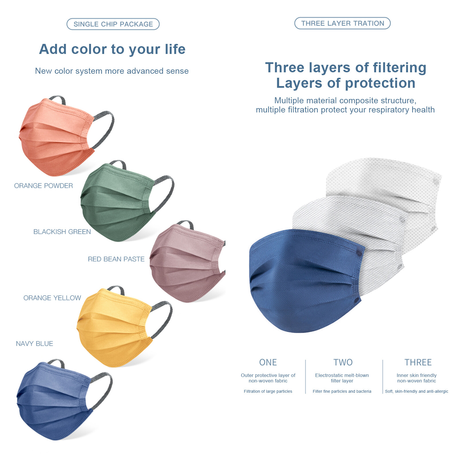 [pantorastar] 30PCS/Box Morandi Adult Medical-Surgical Mask 3ply Non-woven Protection Disposable Medical-Surgical Face Mask-Individually packaged