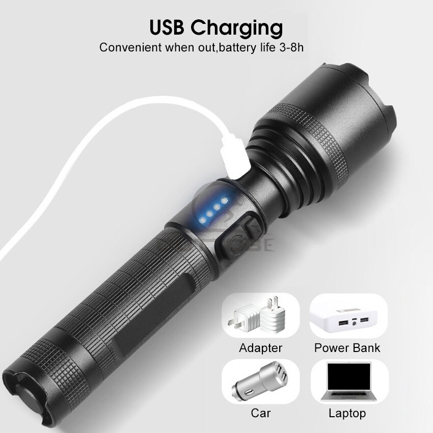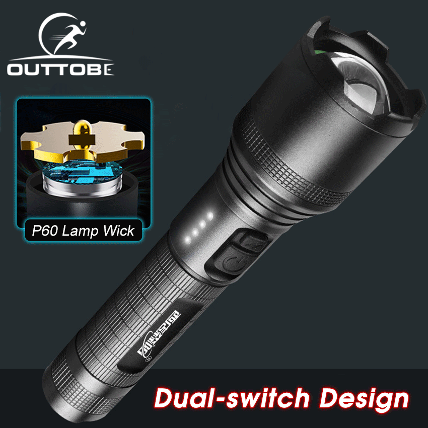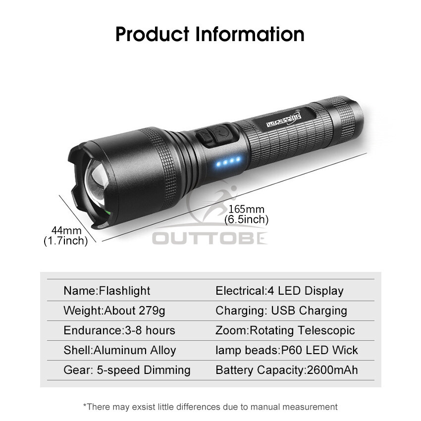 Outtobe Outdoor Flashlight LED Torch Light Zoomable Outdoor Flashlight USB Rechargeable LED Flashlight Pocket Size Waterproof Flashlight Strong Light Long Distance for Hiking