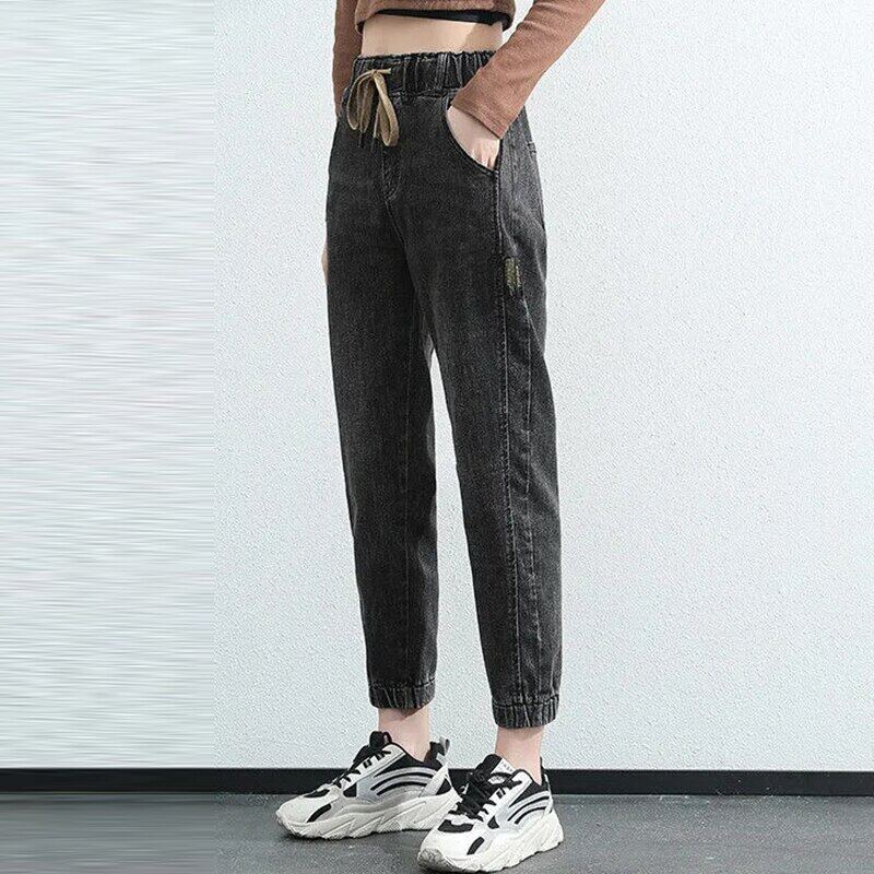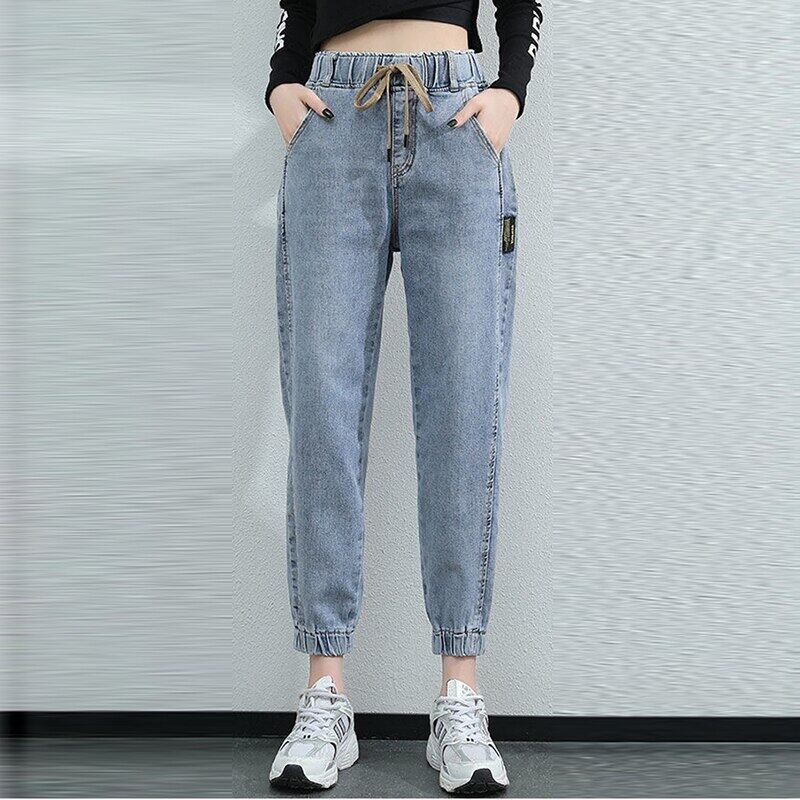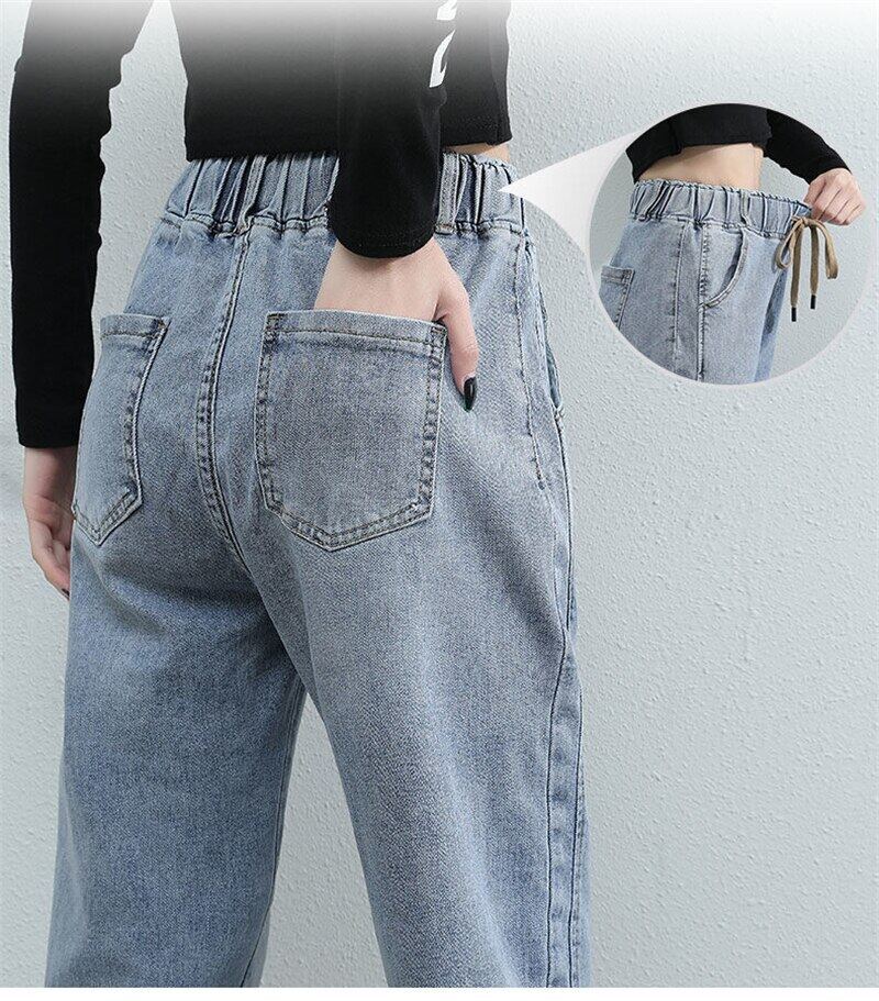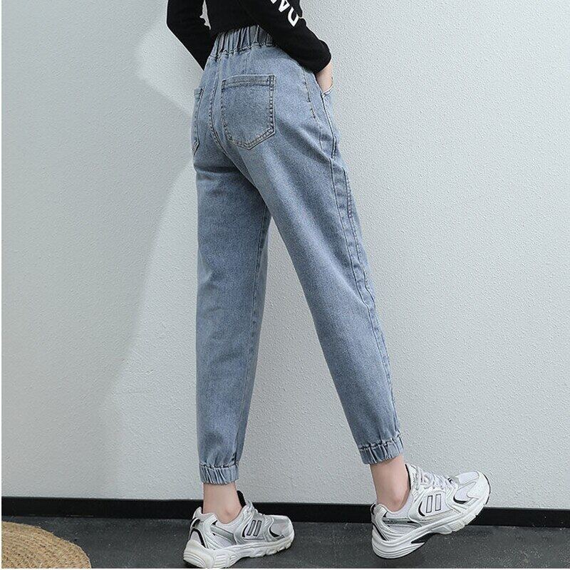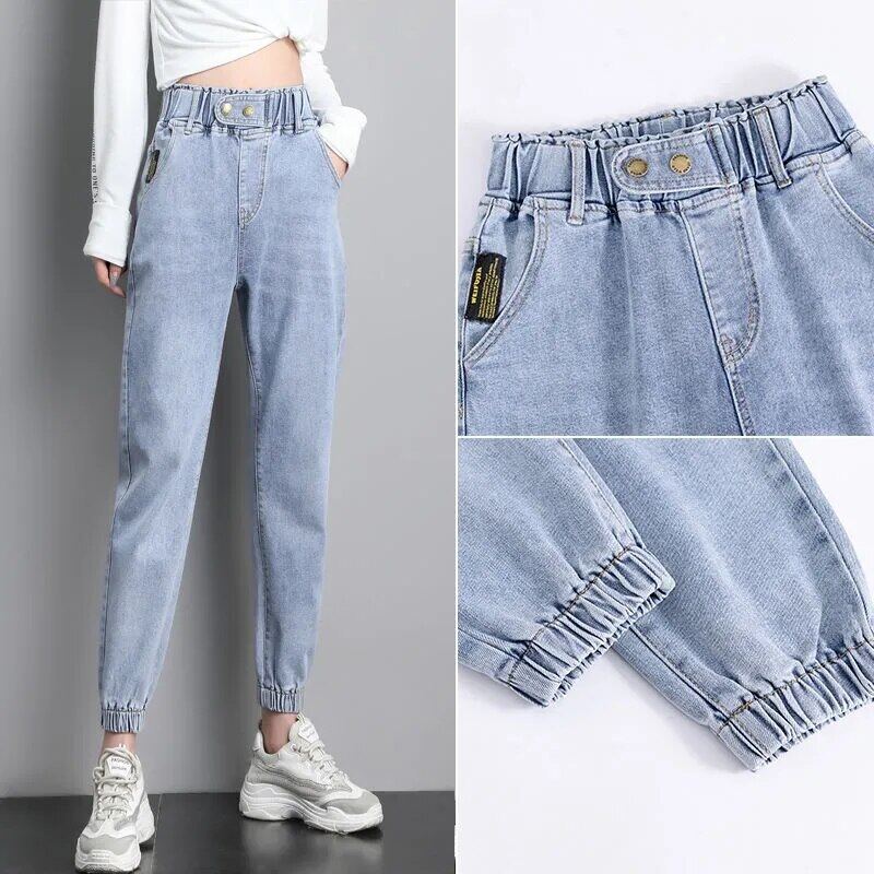 2021 New Women Denim Trousers Large Size Spring Autumn Elastic Waist Ladies Jeans Korean Style Casual Stretch Vintage Ankle-Length Pants