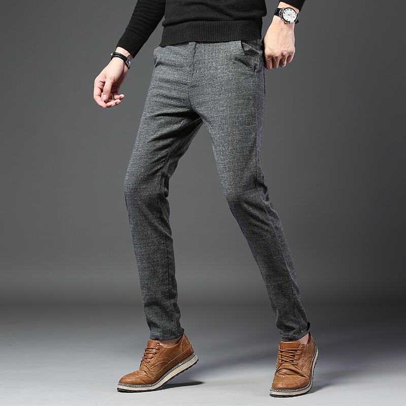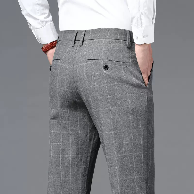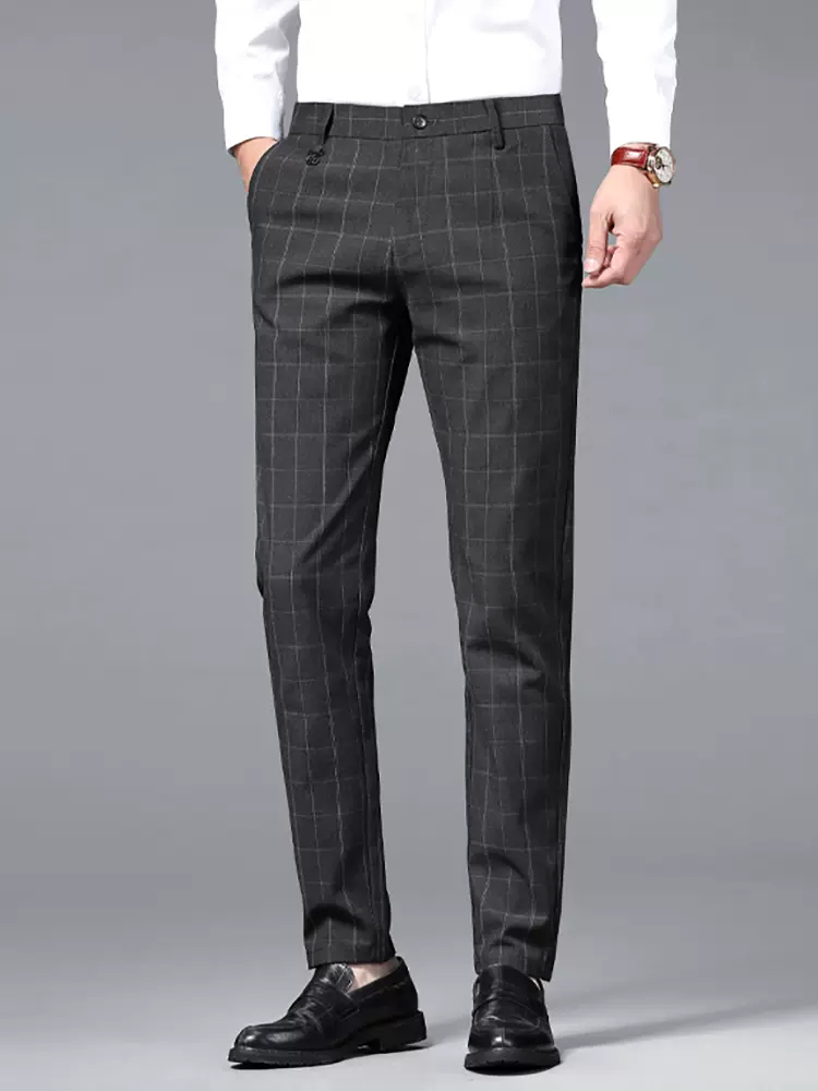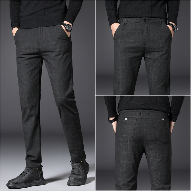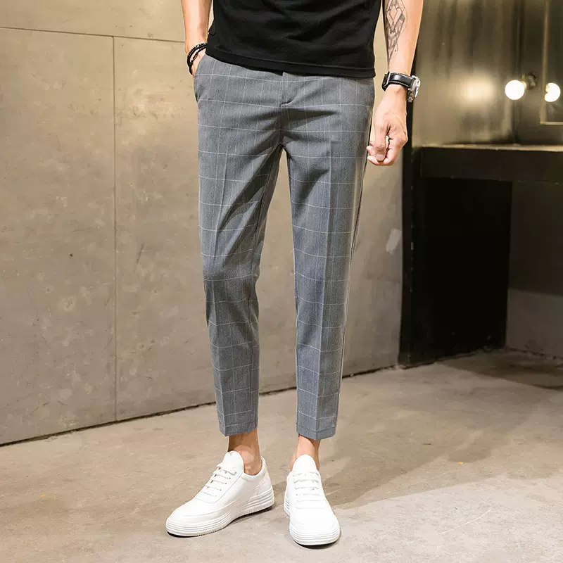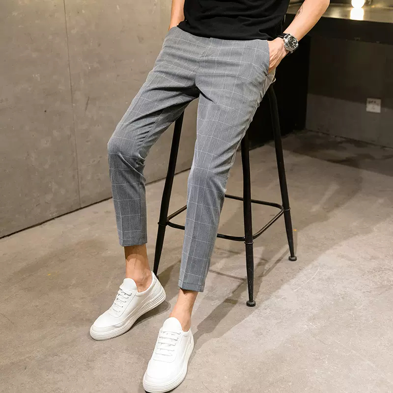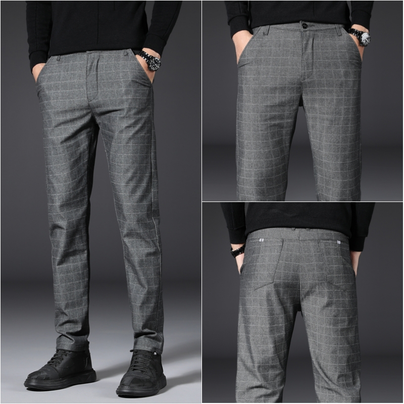 [Ready Stock] Checkered Pants Men Korean Slim Fit Pants Comfortable Office Cropped Trousers Kurta