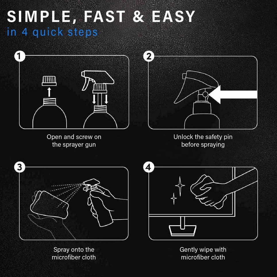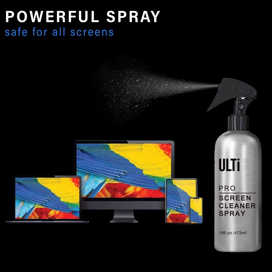 ULTi Screen Cleaner Spray [PRO] with Microfibre Cloth, Compatible with TV, Monitor, Laptop, iPad, iPhone, Tablet Screens