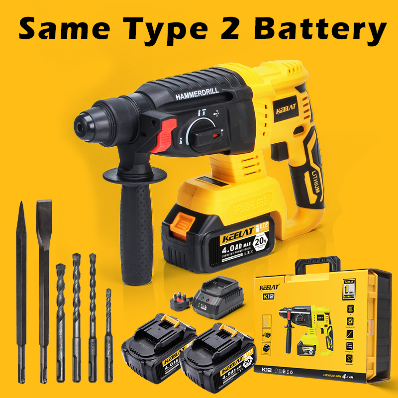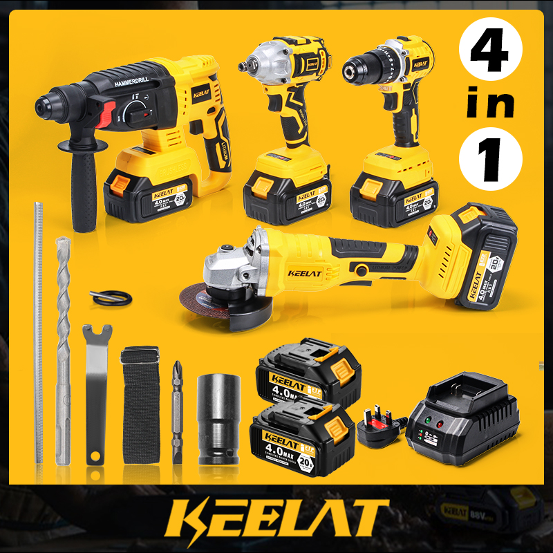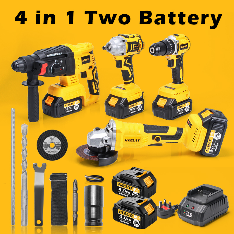 Multi-functional suit combination in one box which including Electric Wrench/Electric Drill/Electric Rotary Hammer/Angle Grinder,work together to make efficiency faster.