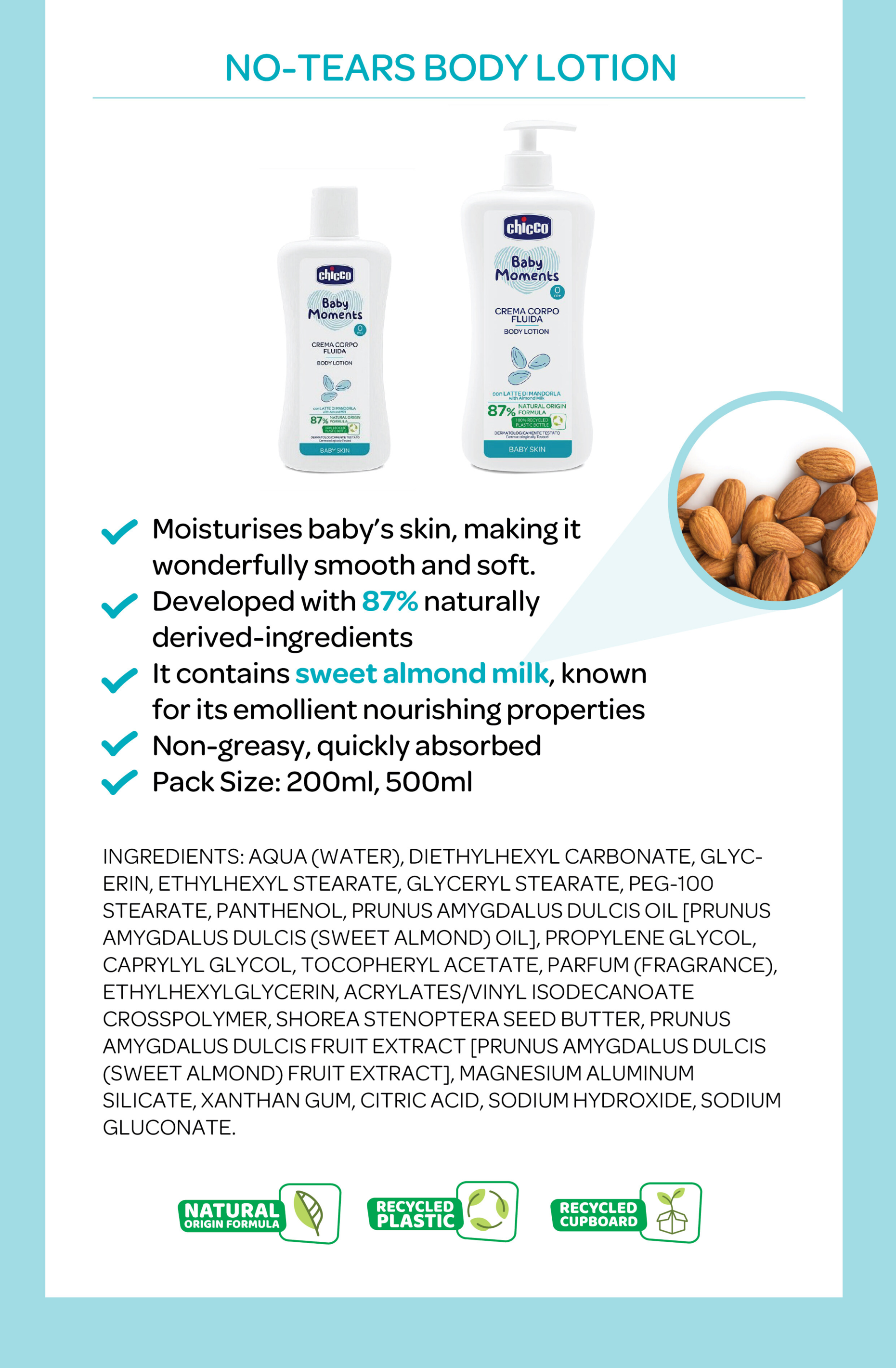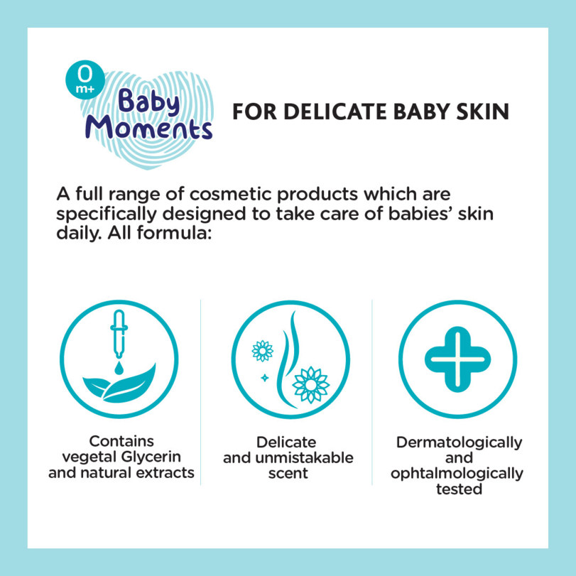 - Moisturises baby’s skin, making it wonderfully smooth and soft