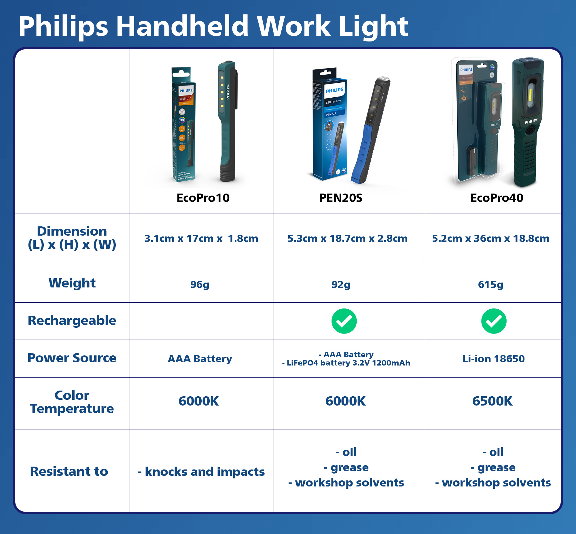 NEW | Philips LED Work Light | Rechargeable Compact Lamp PEN20S | Ultra durable battery