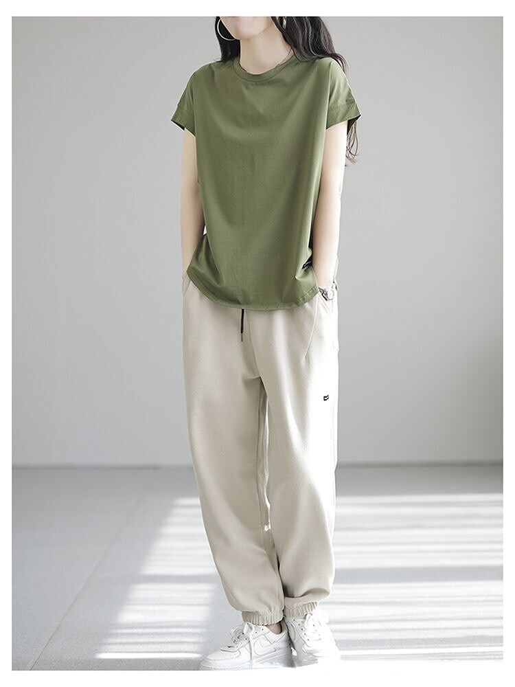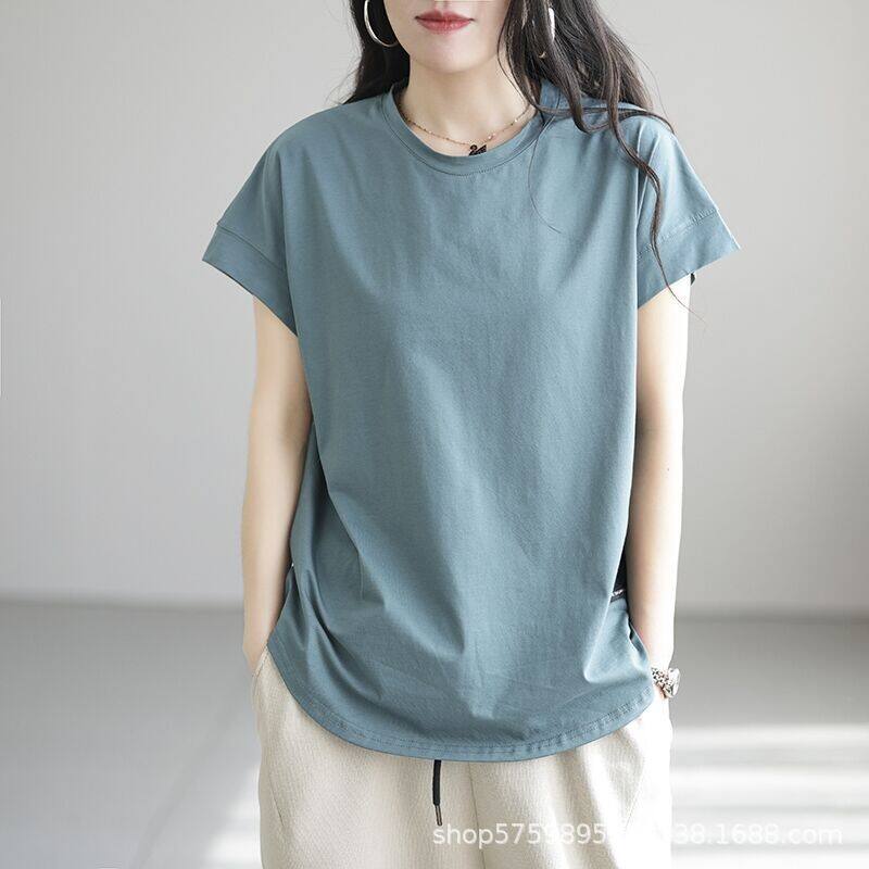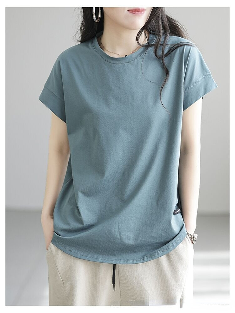 Korean Style women's casual solid color short-sleeved t-shirt loose Office Lady Plus Size tops M-3XL