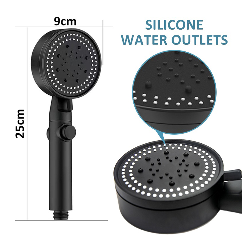 High Pressure Shower Head 5 Modes Adjustable Showerheads with 1.5m Hose Water Saving One-Key Stop Spray Nozzle Bathroom Showerhead Accessories