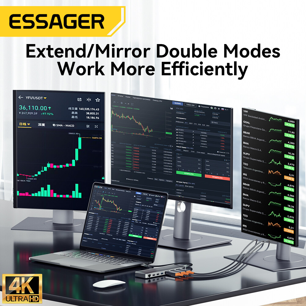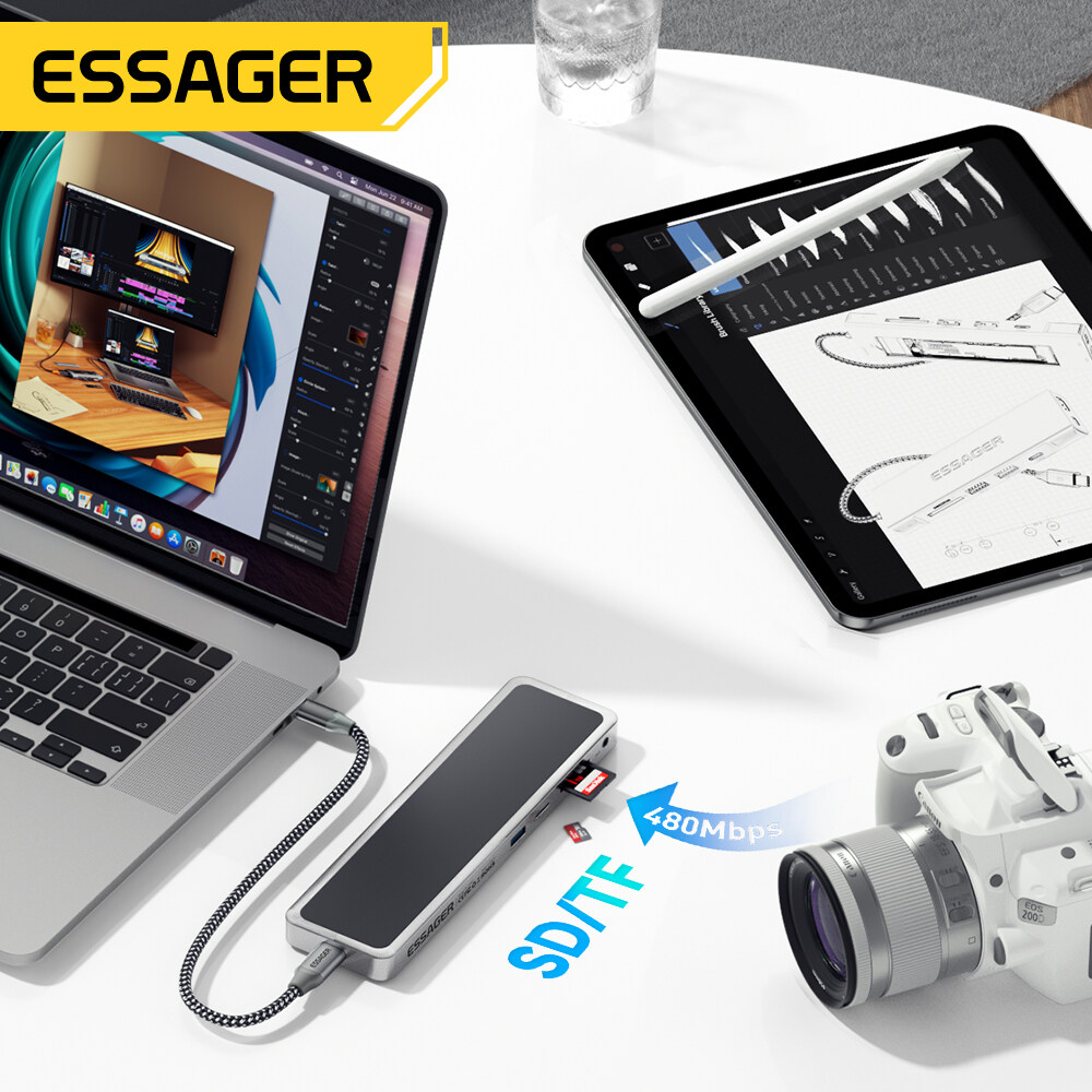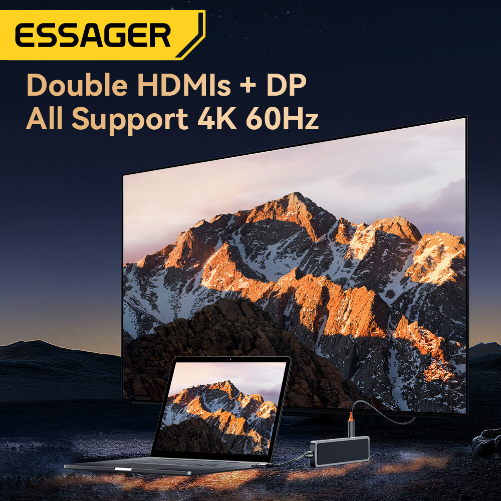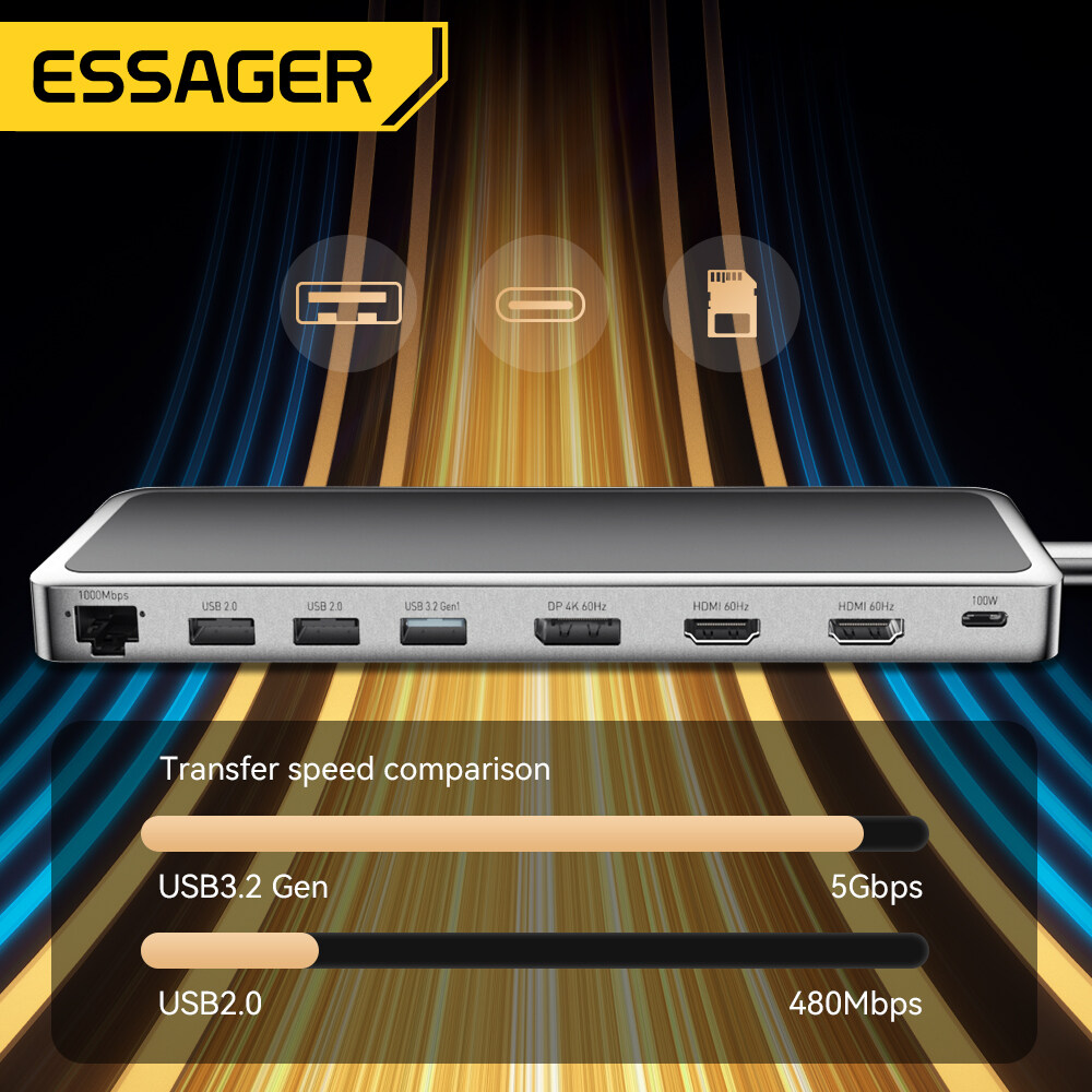 Essager USB C HUB Type C to HDMI-compatible USB 3.0 Adapter 11 in 1Type C HUB Dock RJ45 SD Reader PD 100W Charger For MacBook Pro Air USB C Splitter